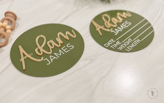 Acrylic Watercolor Monogram Baby Announcement Sign