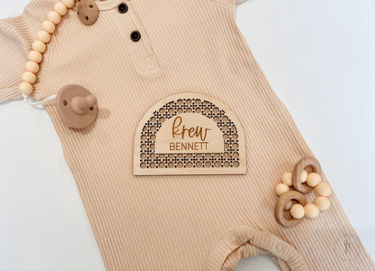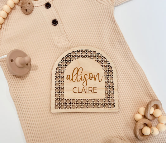Wooden Boho Rattan Arch Baby Name Announcement Sign