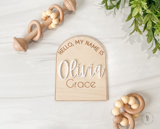 Wooden Hello My Name Is Baby Name Announcement Sign With Acrylic Name