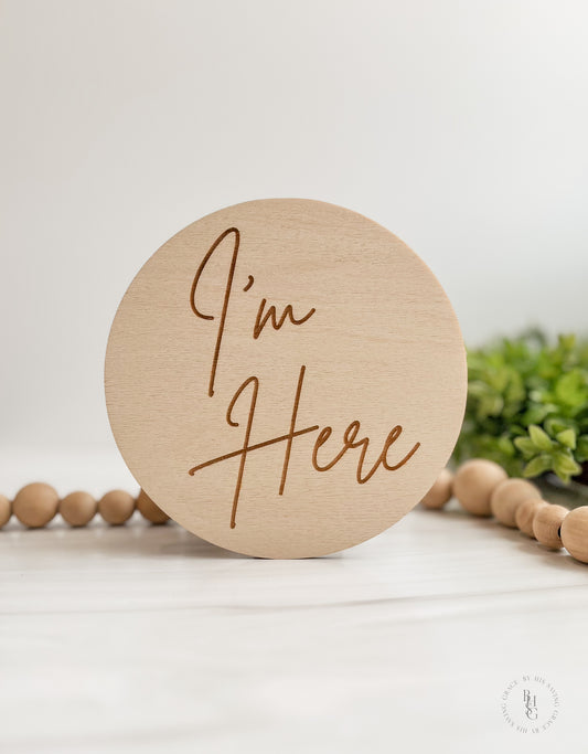 Wooden Double or Single Sided He's Here, She's Here, I'm Here, We're Here Birth Announcement