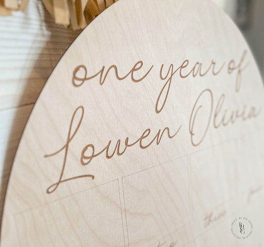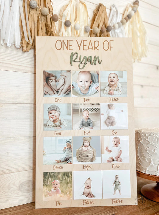 Wooden One Year Of "Your Name" Birthday Photo Board