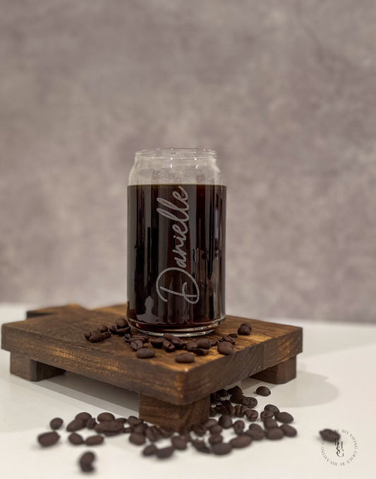 Initials Serving Board & Initial Can Glass + Coasters Gift Basket