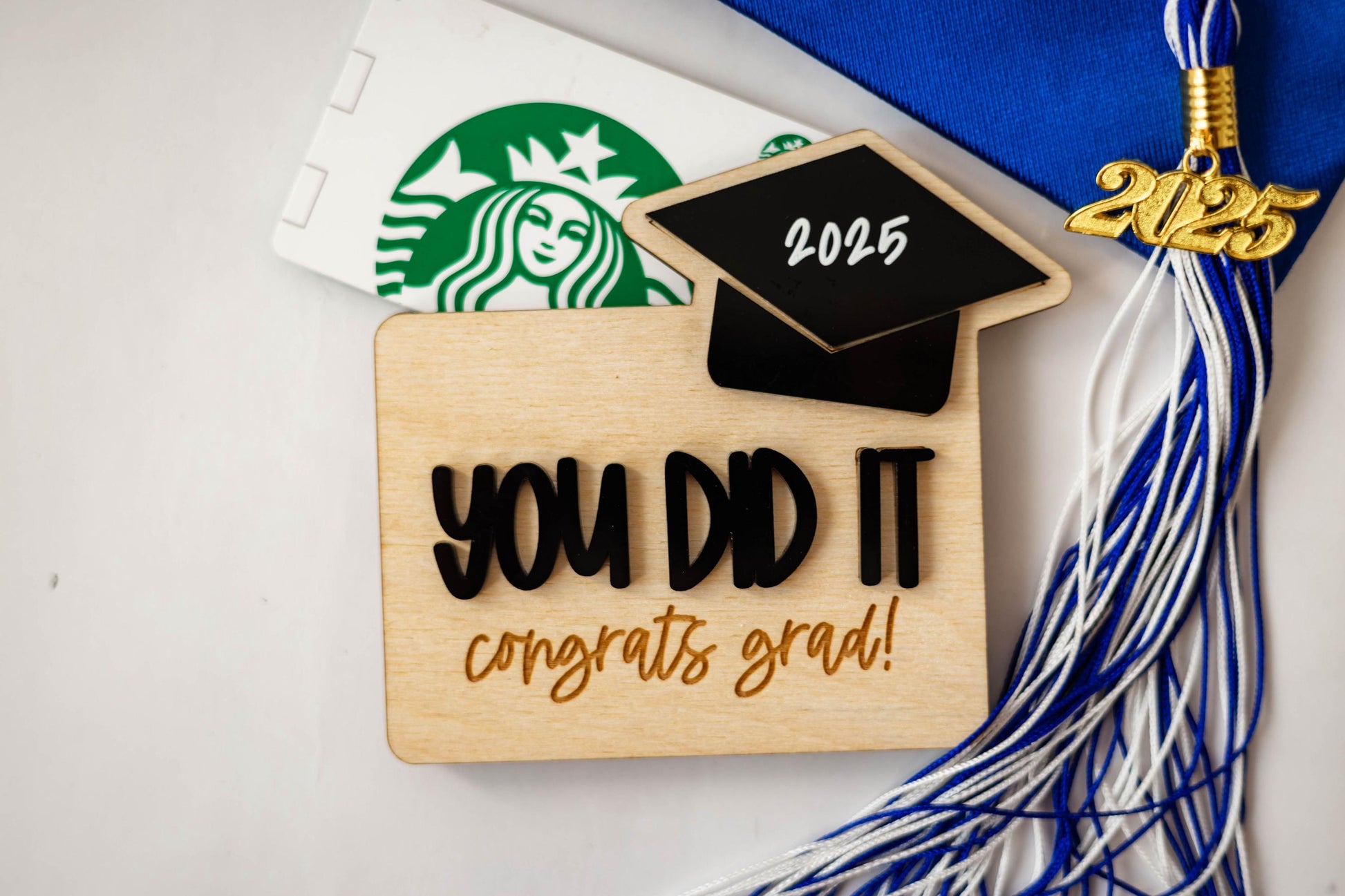 Give the Grad the gift of choice in a memorable way with this wooden graduation gift card holder.