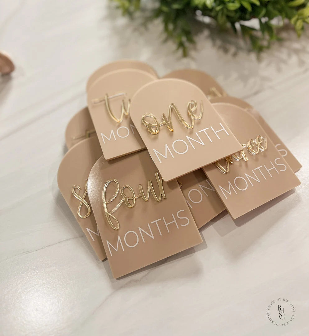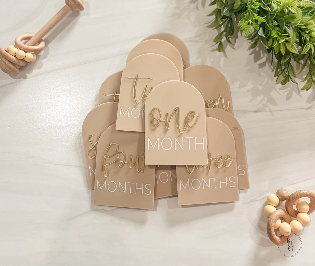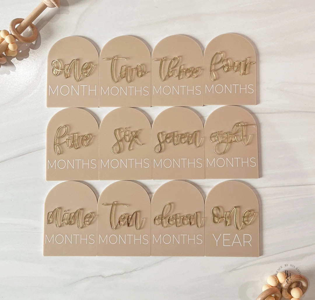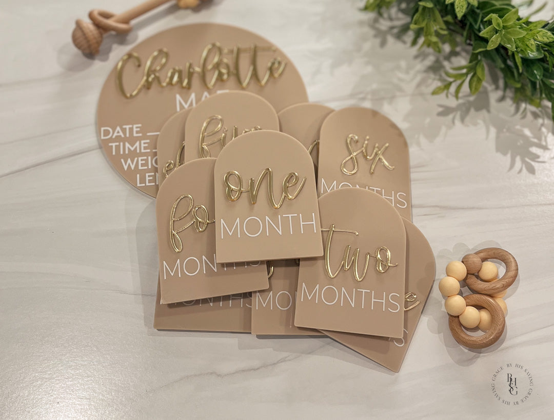 3D Acrylic Arch Monthly Milestone Discs For Baby Photos + Matching Nameplate