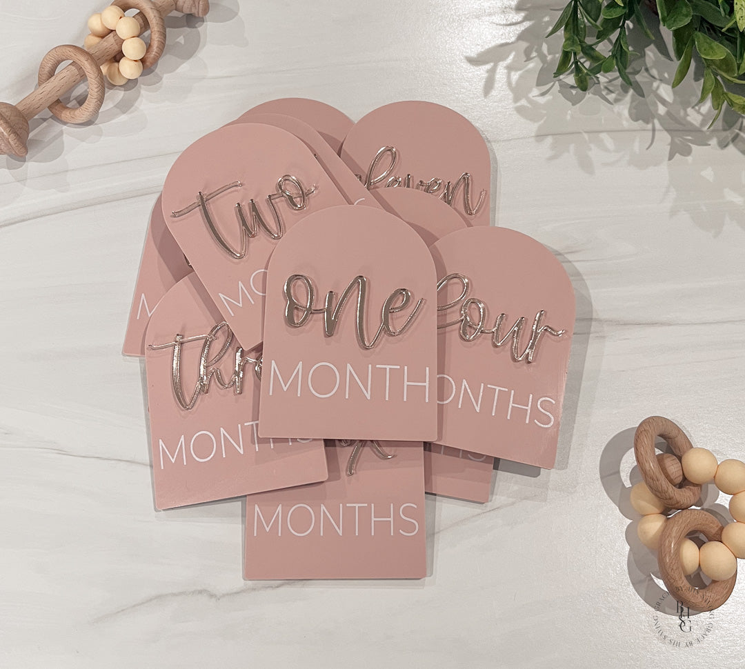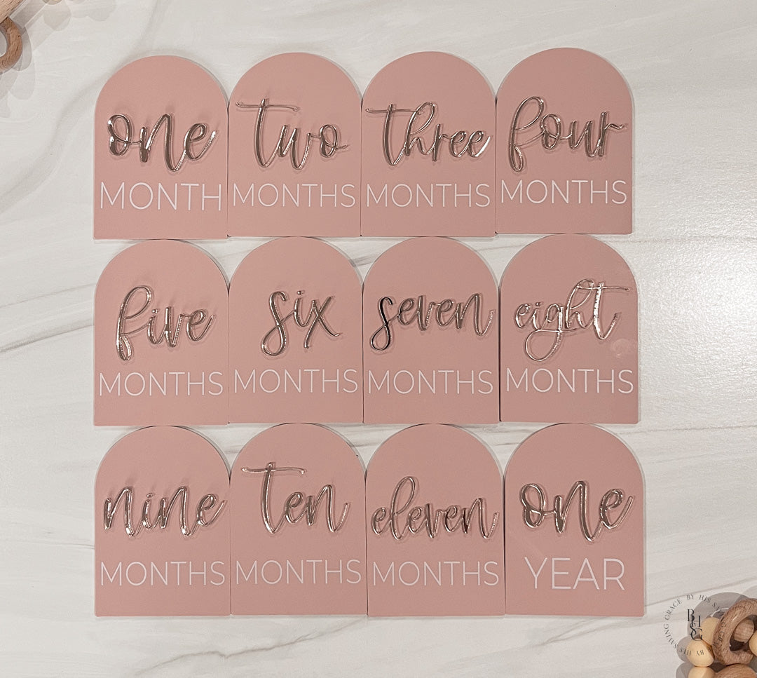 3D Acrylic Arch Monthly Milestone Discs For Baby Photos + Matching Nameplate