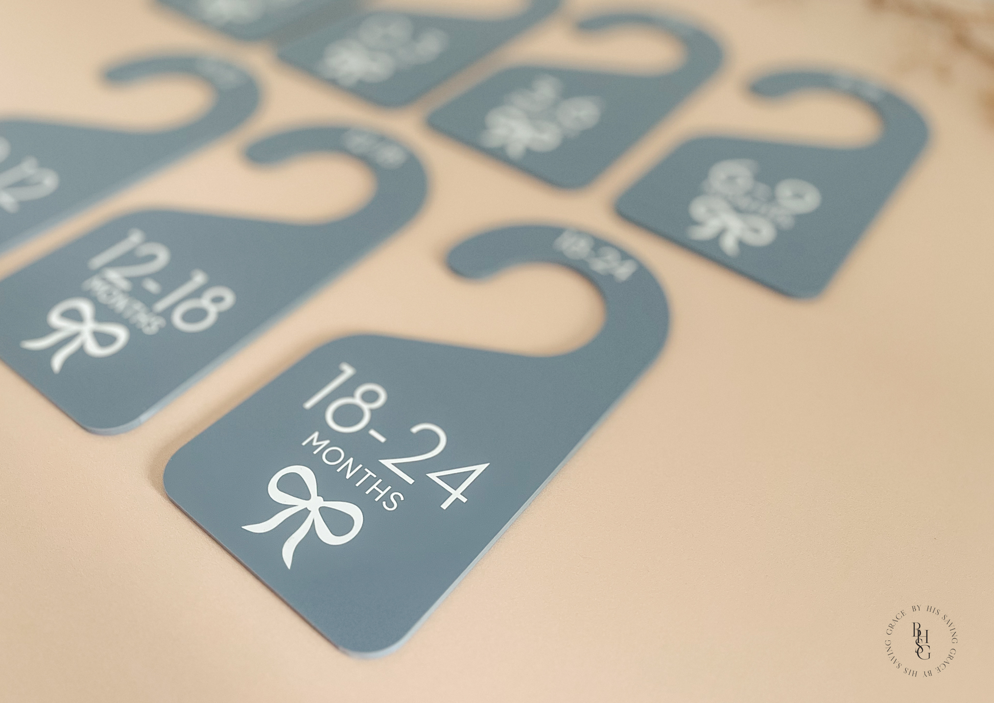 Set includes dividers for: Newborn, 0-3 Months, 3-6 Months, 6-9 Months, 9-12 Months, 12-18 Months, and 18-24 Months