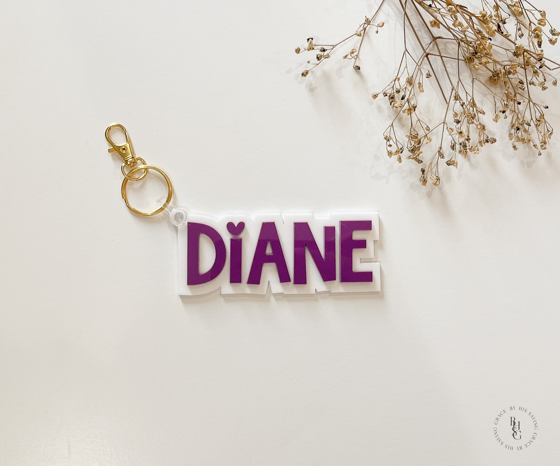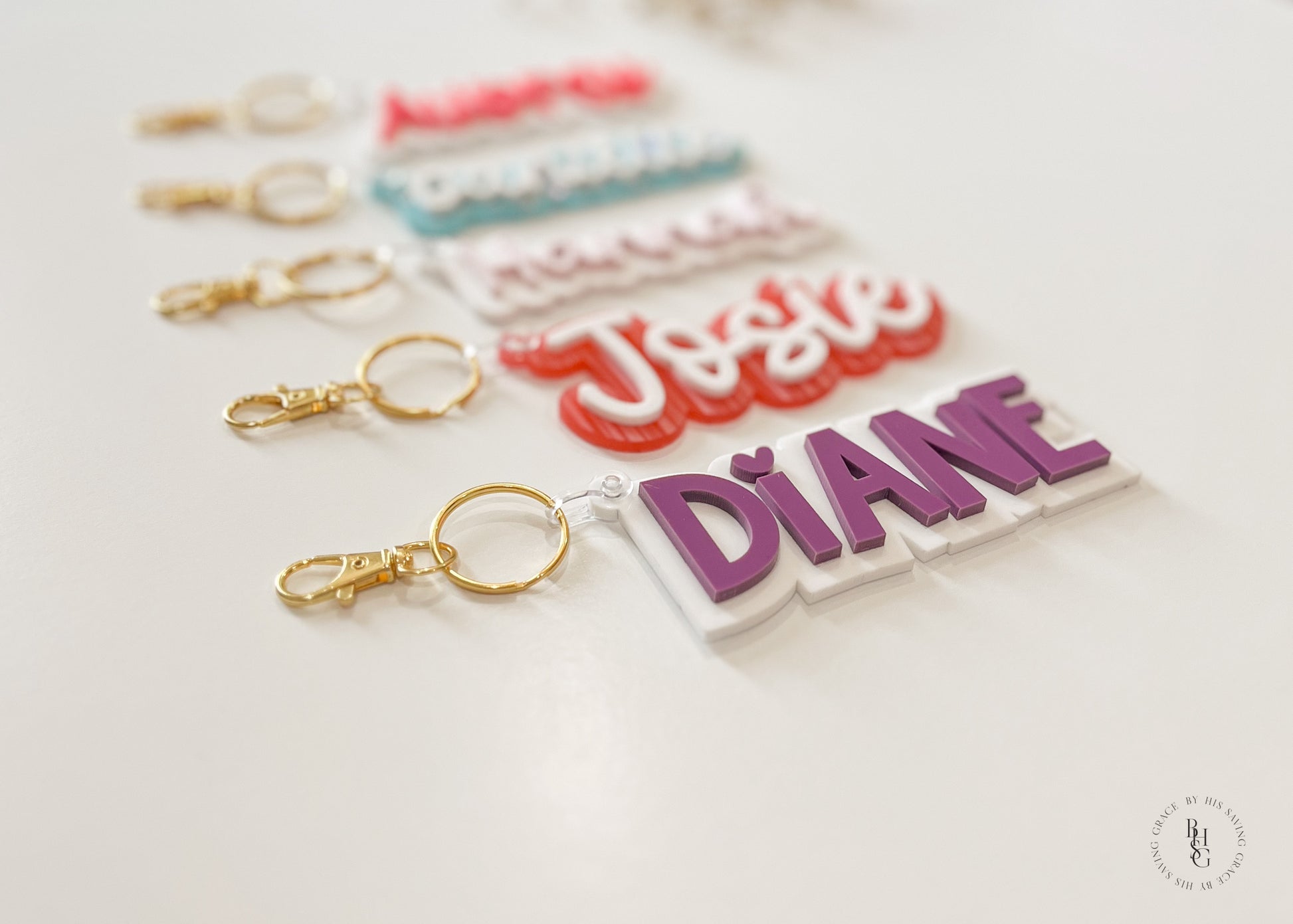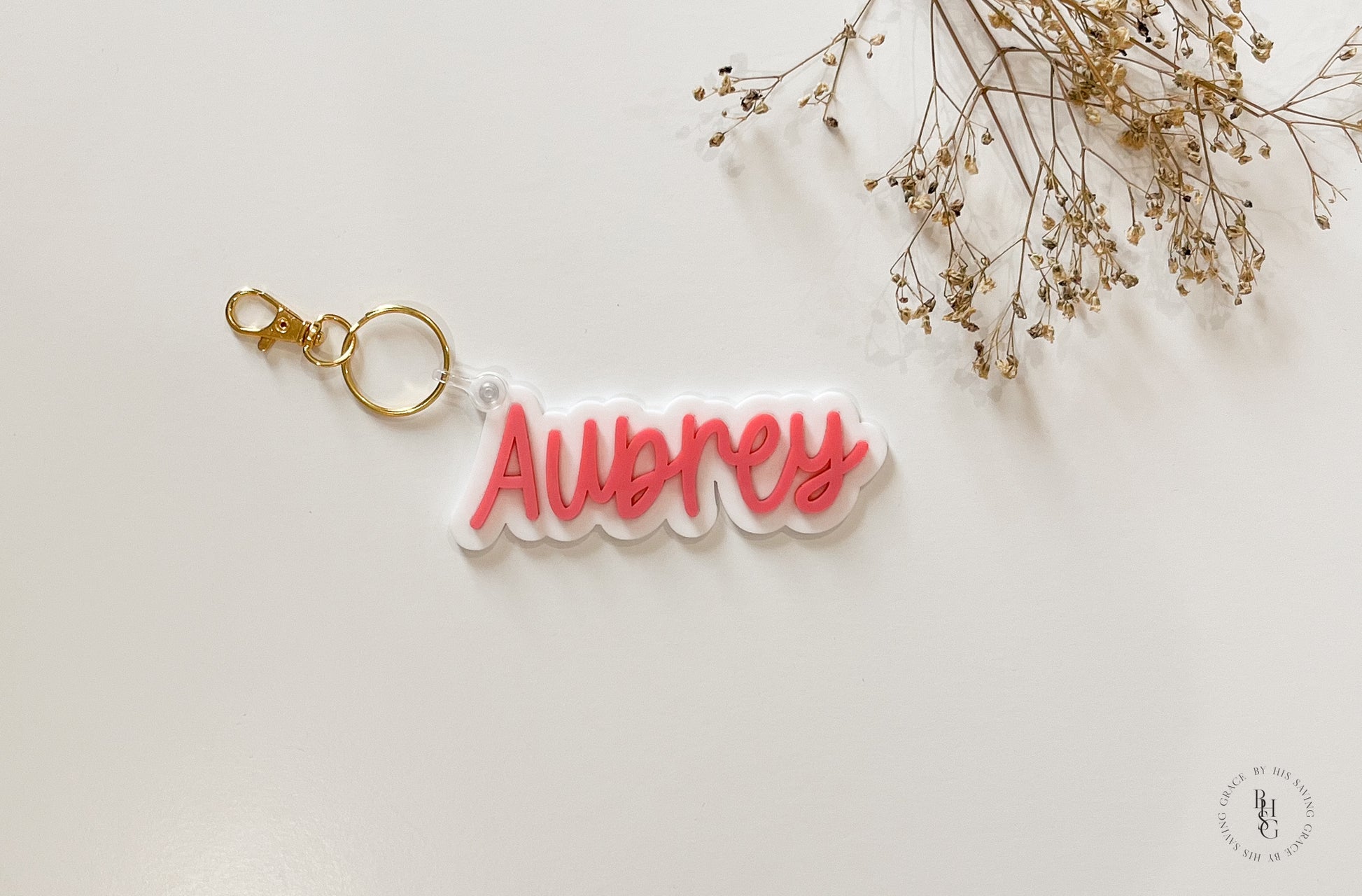Add a personalized touch with our custom acrylic name keychain! Perfect as a bag tag, keychain, or backpack accessory. Crafted with care, each keychain features two colors of your choice, allowing you to choose the perfect combination that matches your style.