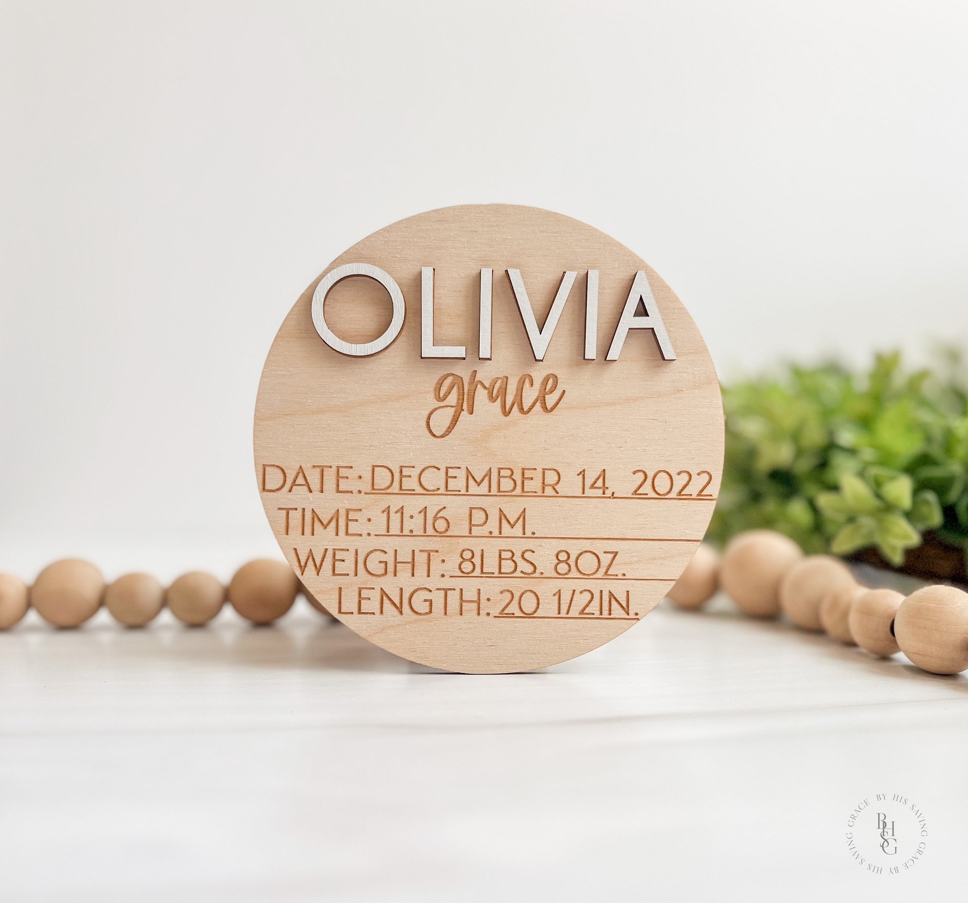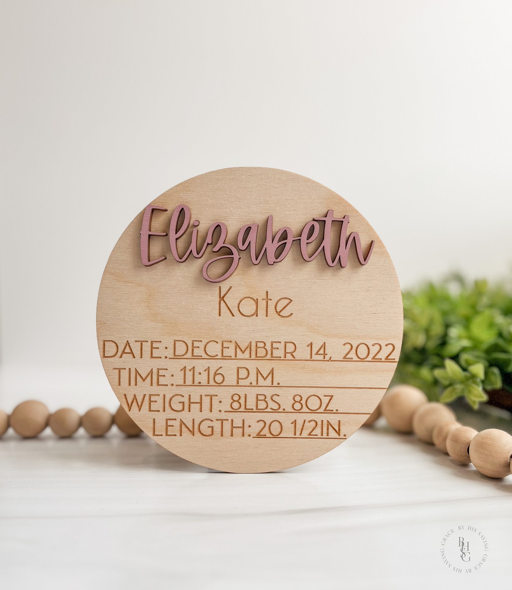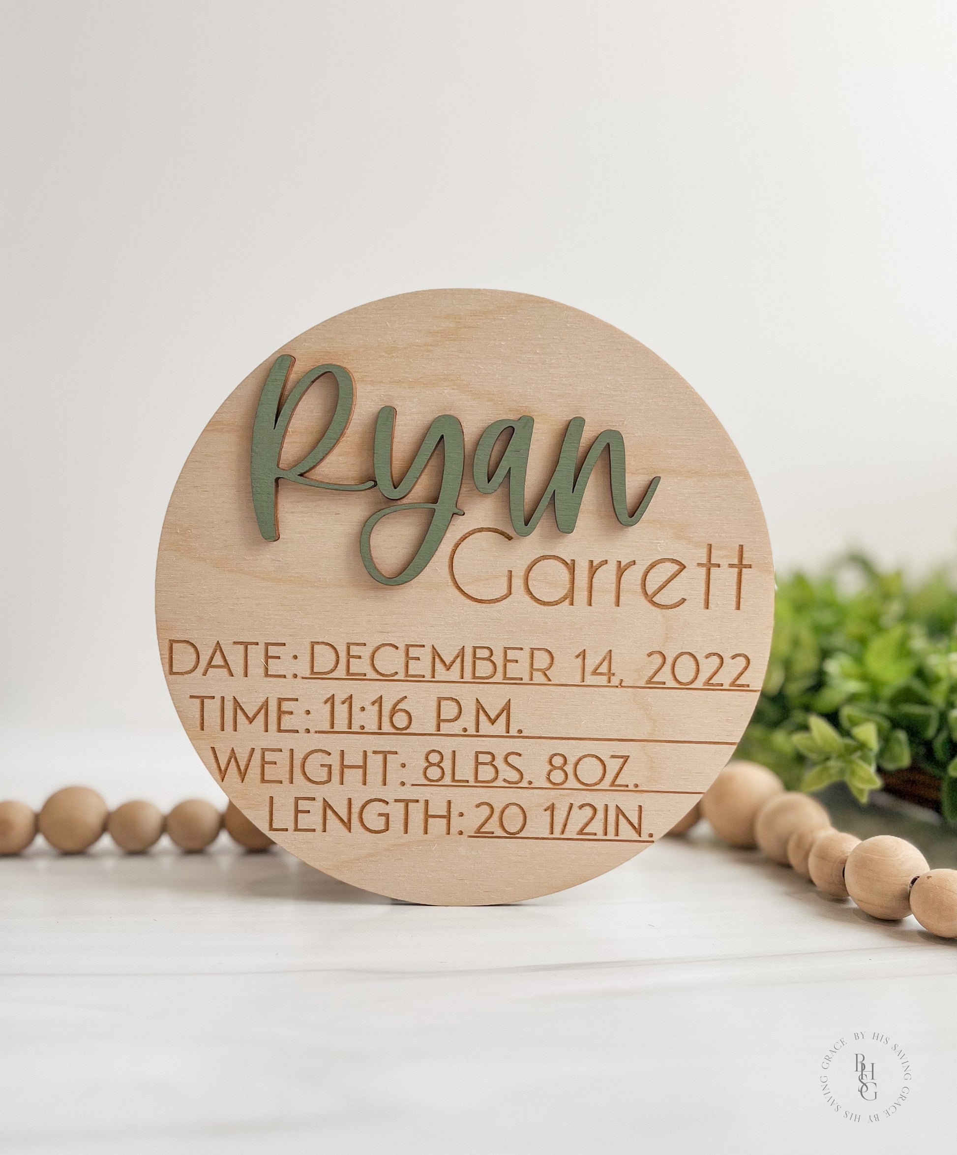 Wooden Baby Announcement Sign With Engraved Birth Stats