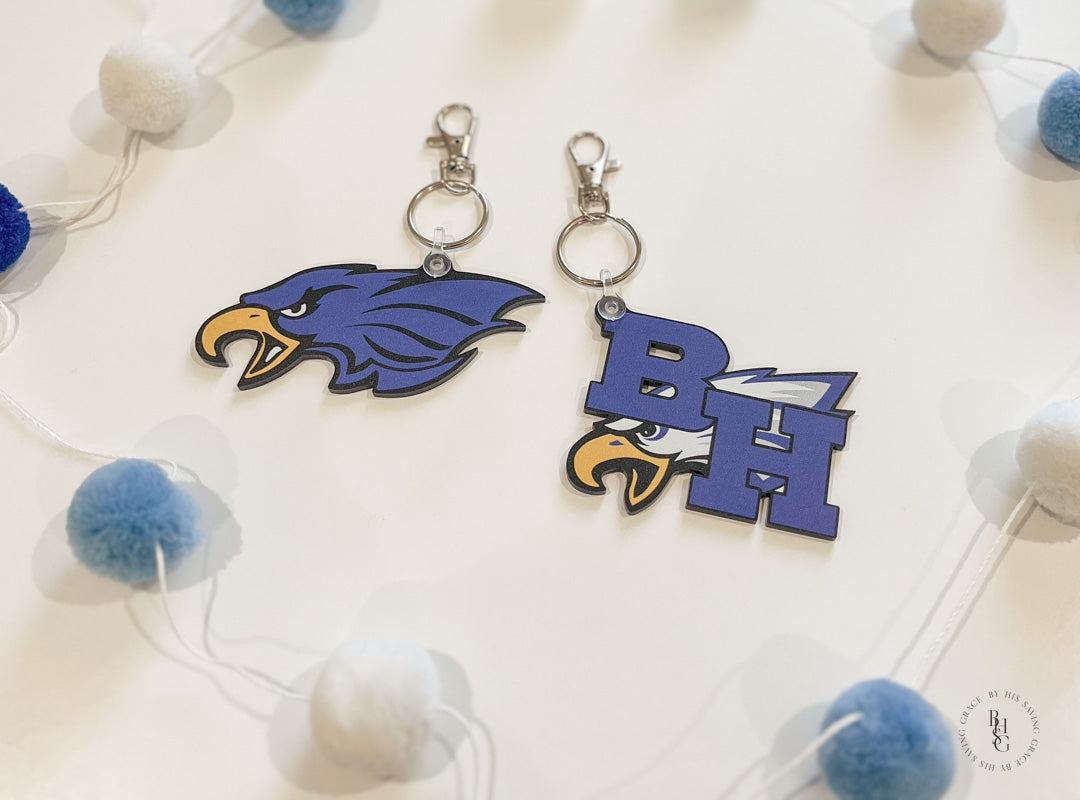 Show your Eagle pride with our laser cut and UV-printed Barbers Hill Eagle keychain! Made from high-quality acrylic and UV-printed, this keychain is made to last for years to come! Add it to your favorite bag or a set of keys, and show your hometown pride!