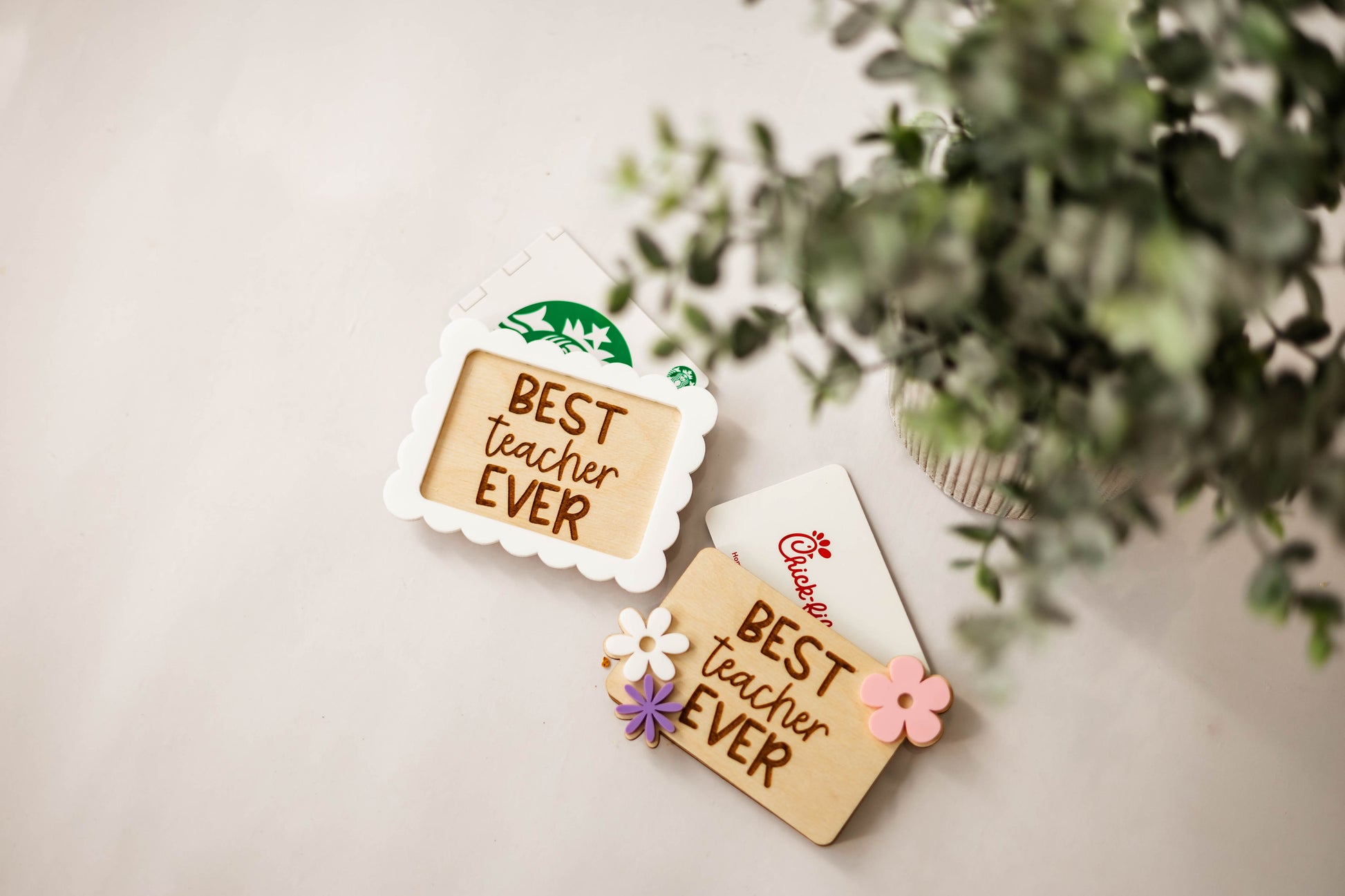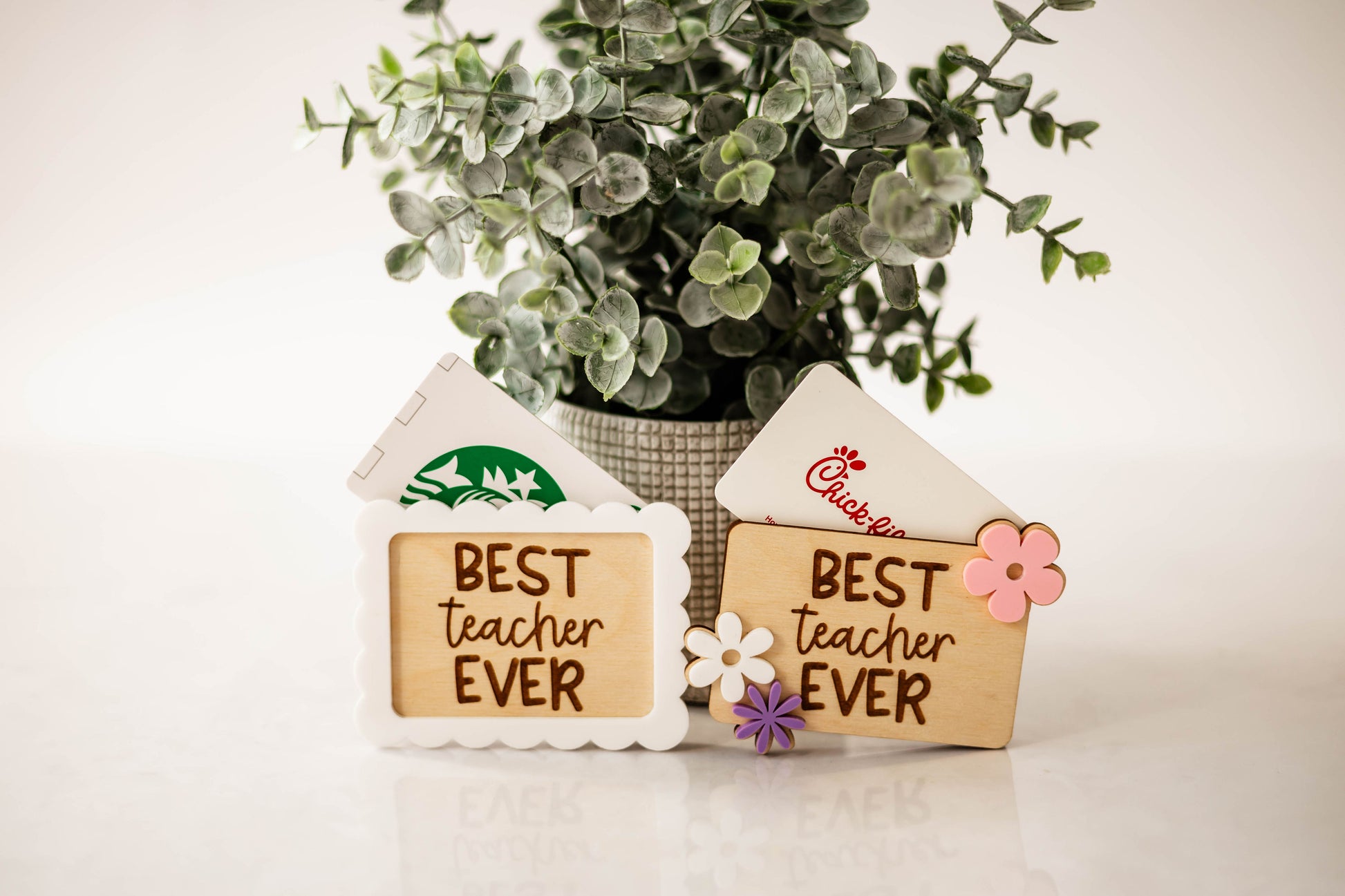 Show your appreciation to your favorite teacher with this beautifully crafted wooden gift card holder.
