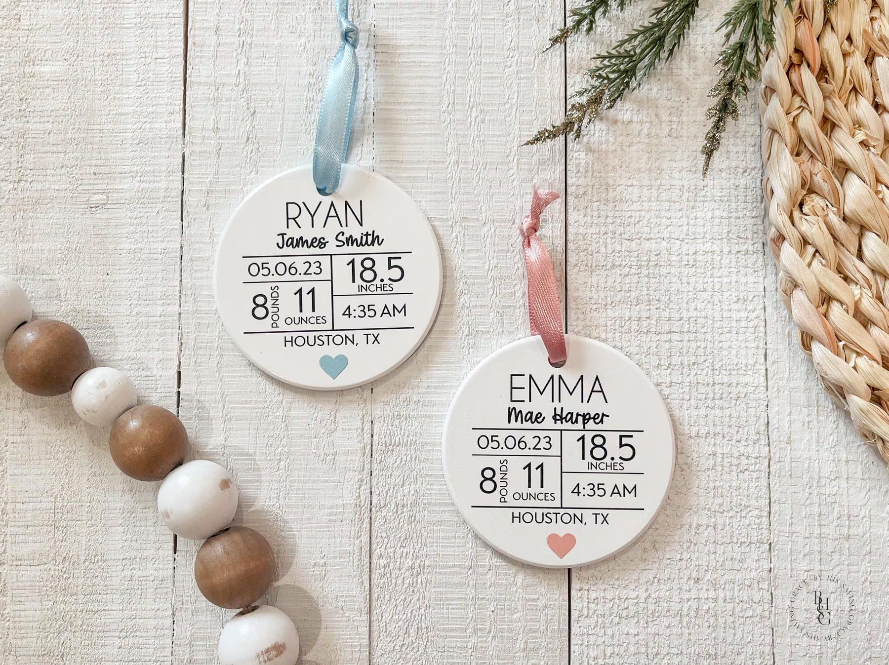Celebrate the most precious new arrival this holiday season with our adorable UV-printed ceramic Christmas ornament! It is a beautiful keepsake printed with your little one's name and all their special birth stats. A perfect ornament to look back on year-after-year