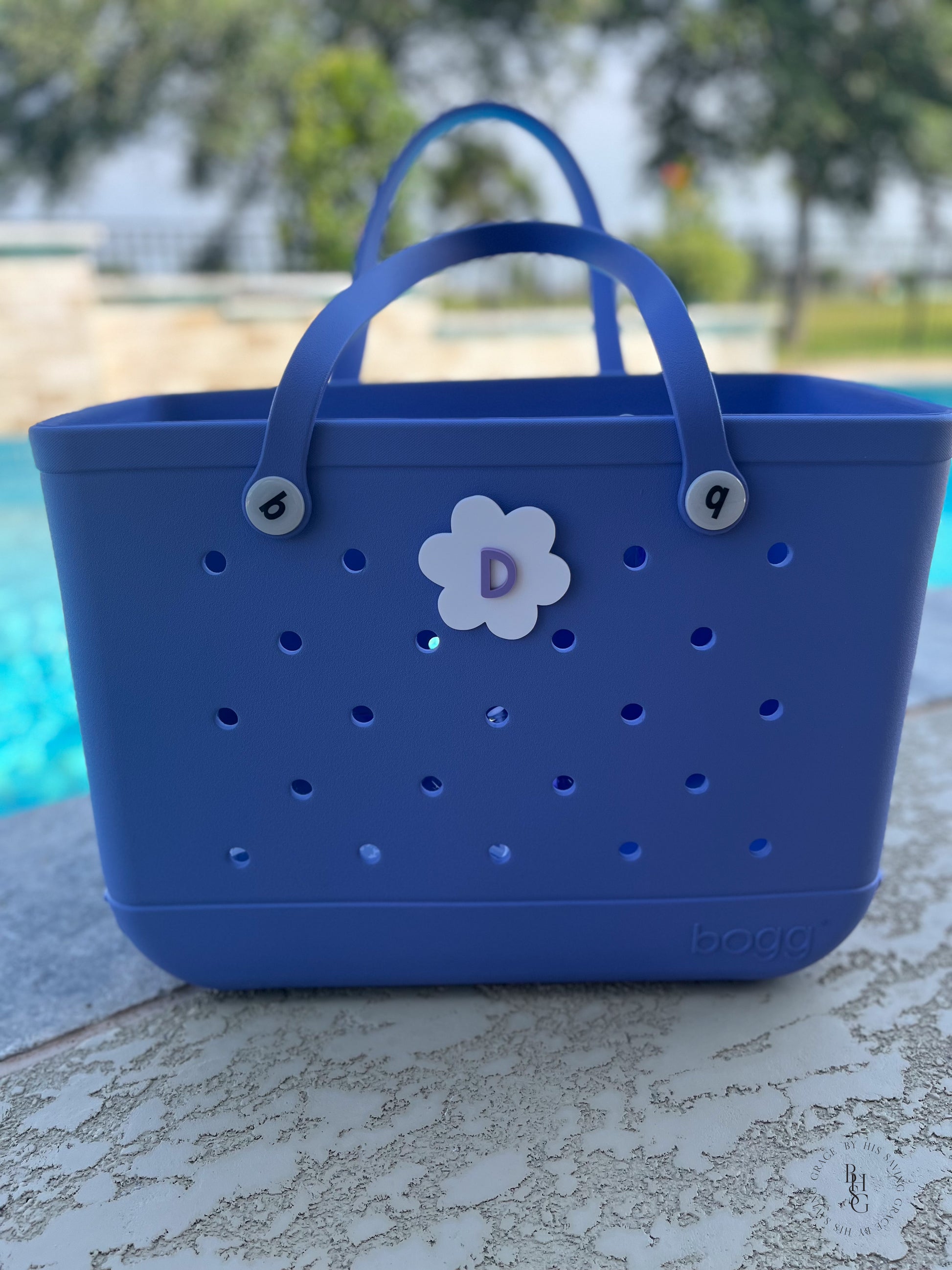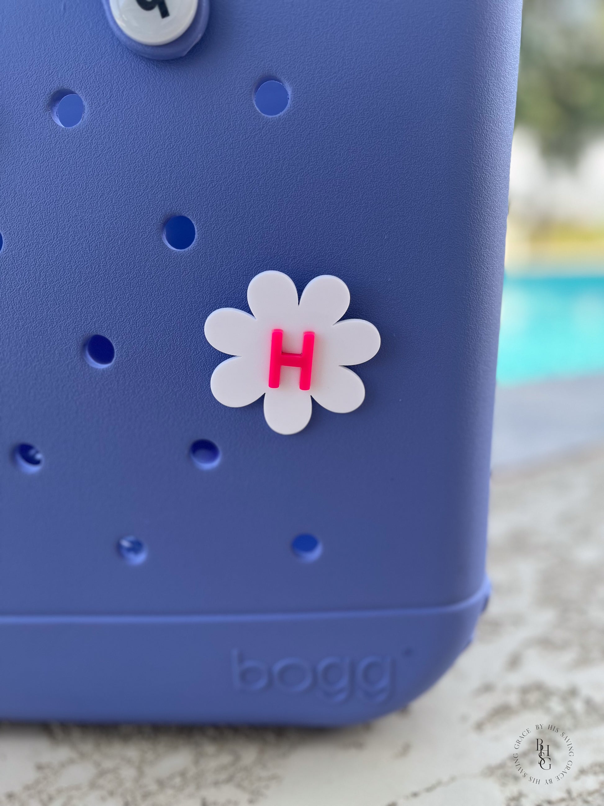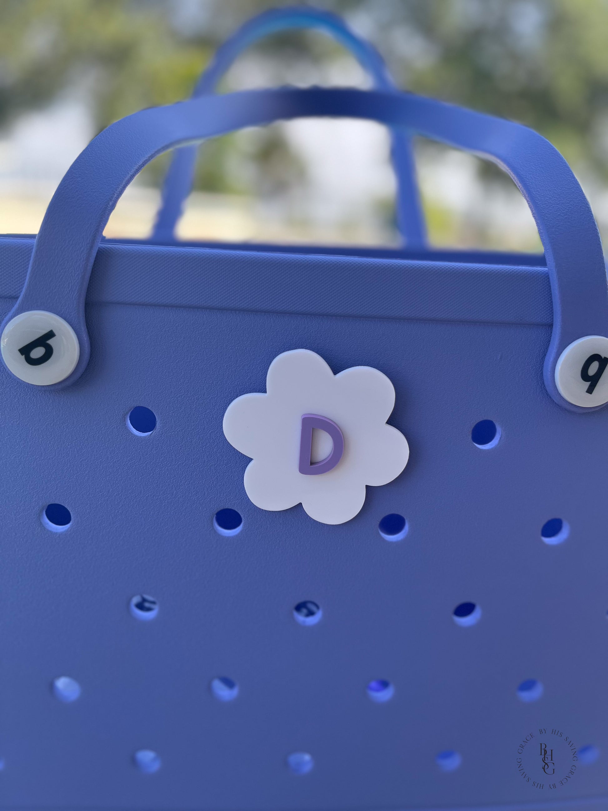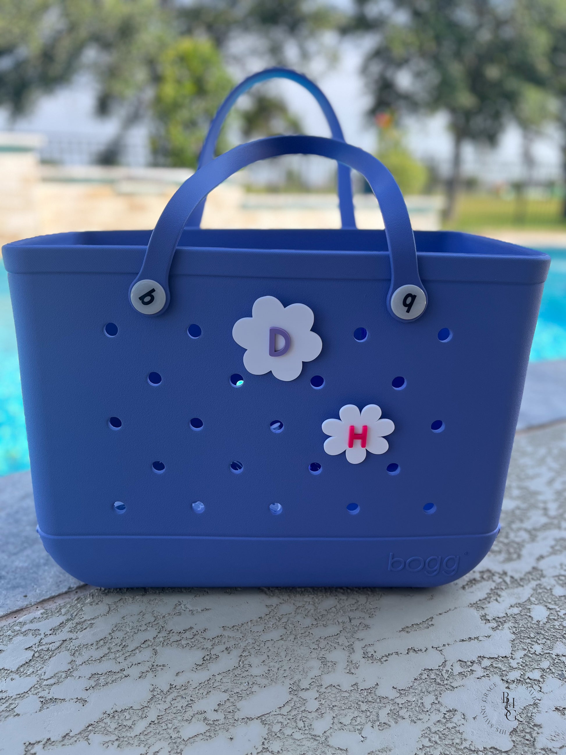 Our laser-cut acrylic Bogg bag flower charm is the perfect little accessory to add a little personality to your bag and is customized with your initial of choice.