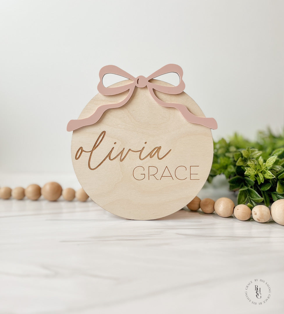 Our laser-cut and engraved baby announcement sign features an acrylic bow with an engraved name. You will have the option to purchase the nameplate sign, the birth stat sign, or both! This is a perfect way to announce the arrival of your precious baby and fits perfectly in a hospital crib next to your little one.