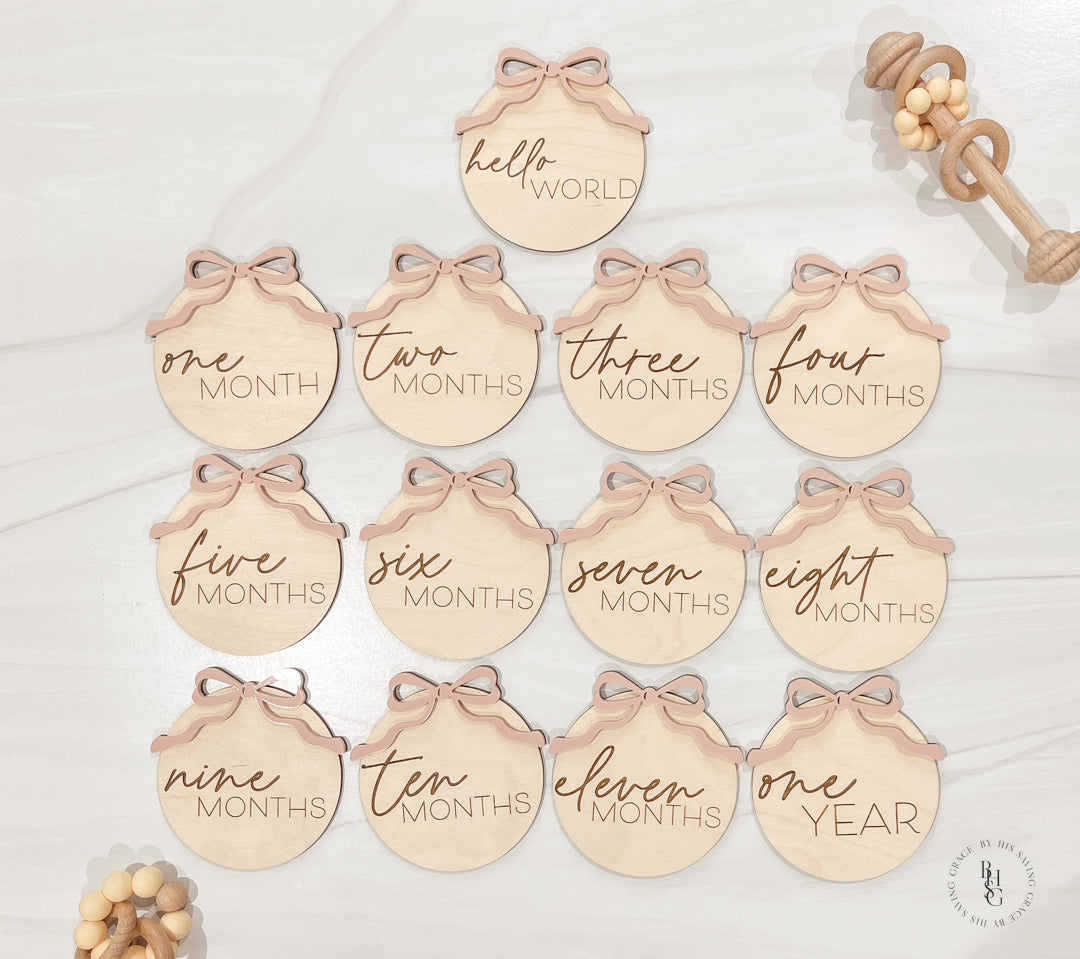 Bow Wooden Monthly Milestone Discs For Baby Photos