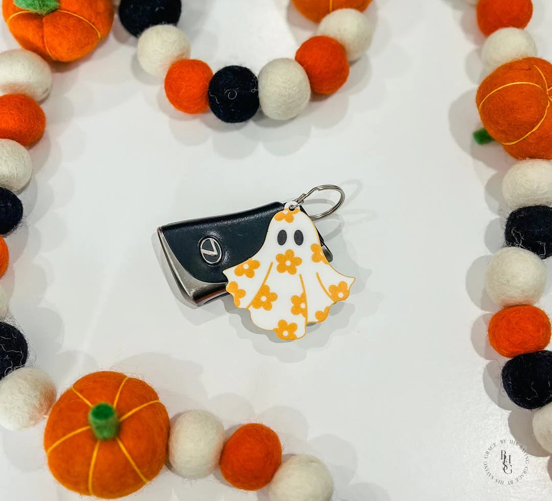 Daisy Ghost Halloween Keychain with UV Printed Design