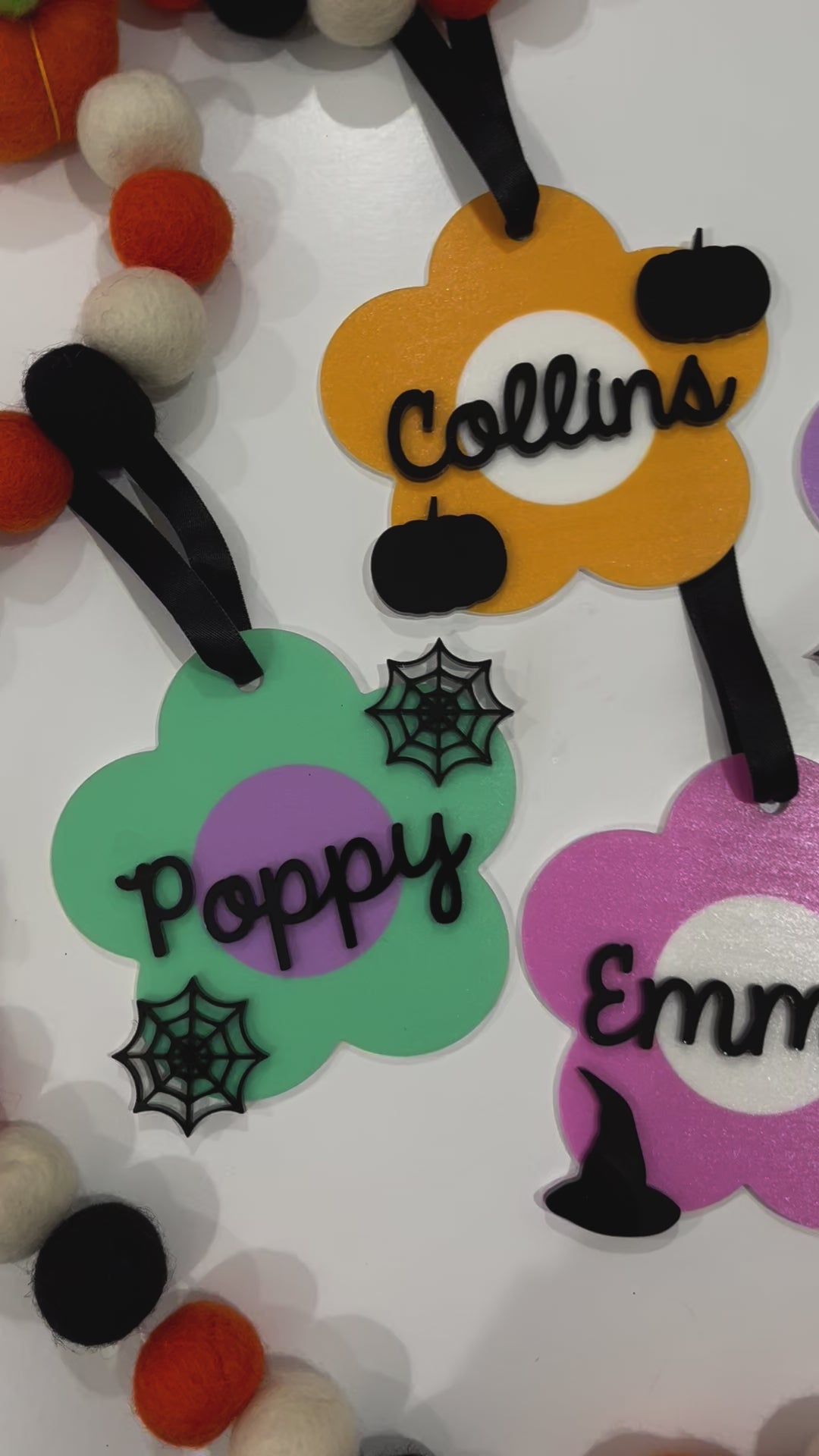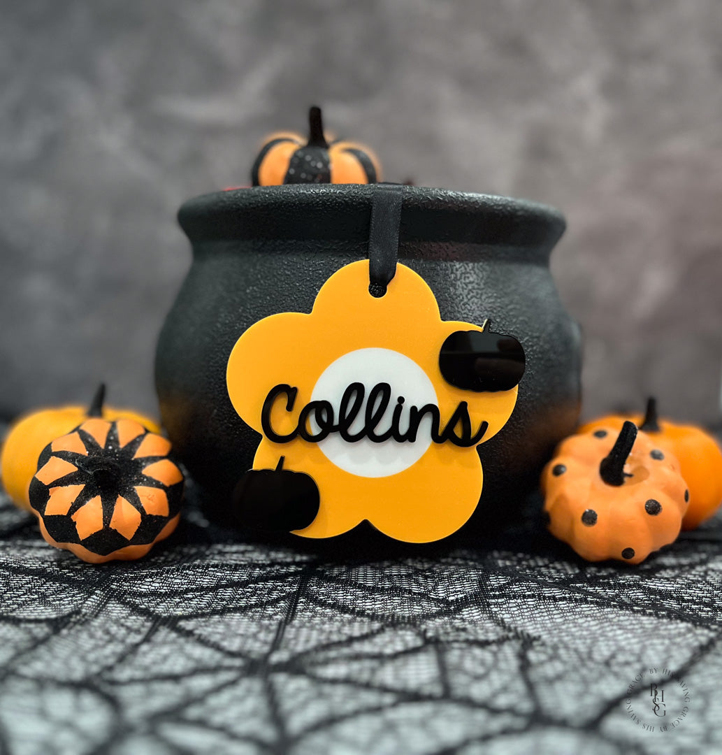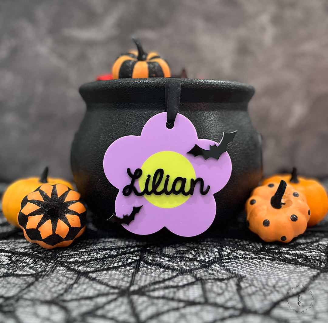Personalize any Halloween bucket with this adorable, lightweight acrylic daisy name tag featuring a UV printed design in choice of color!