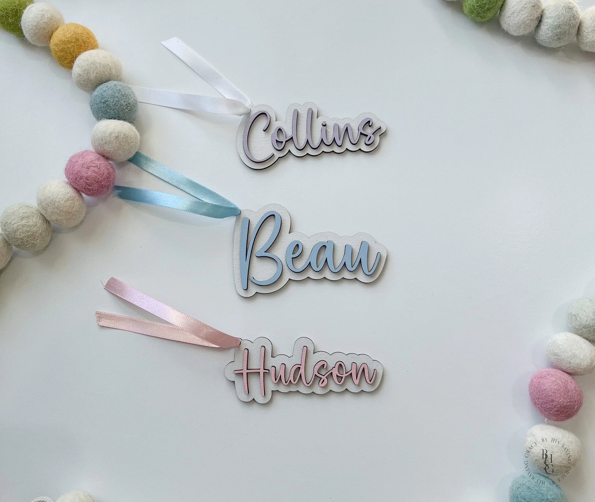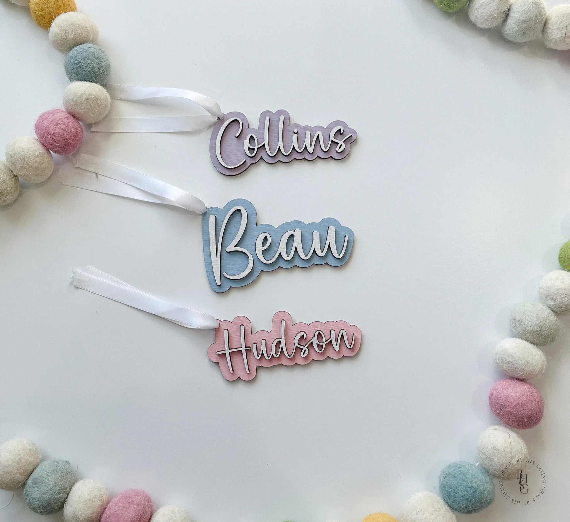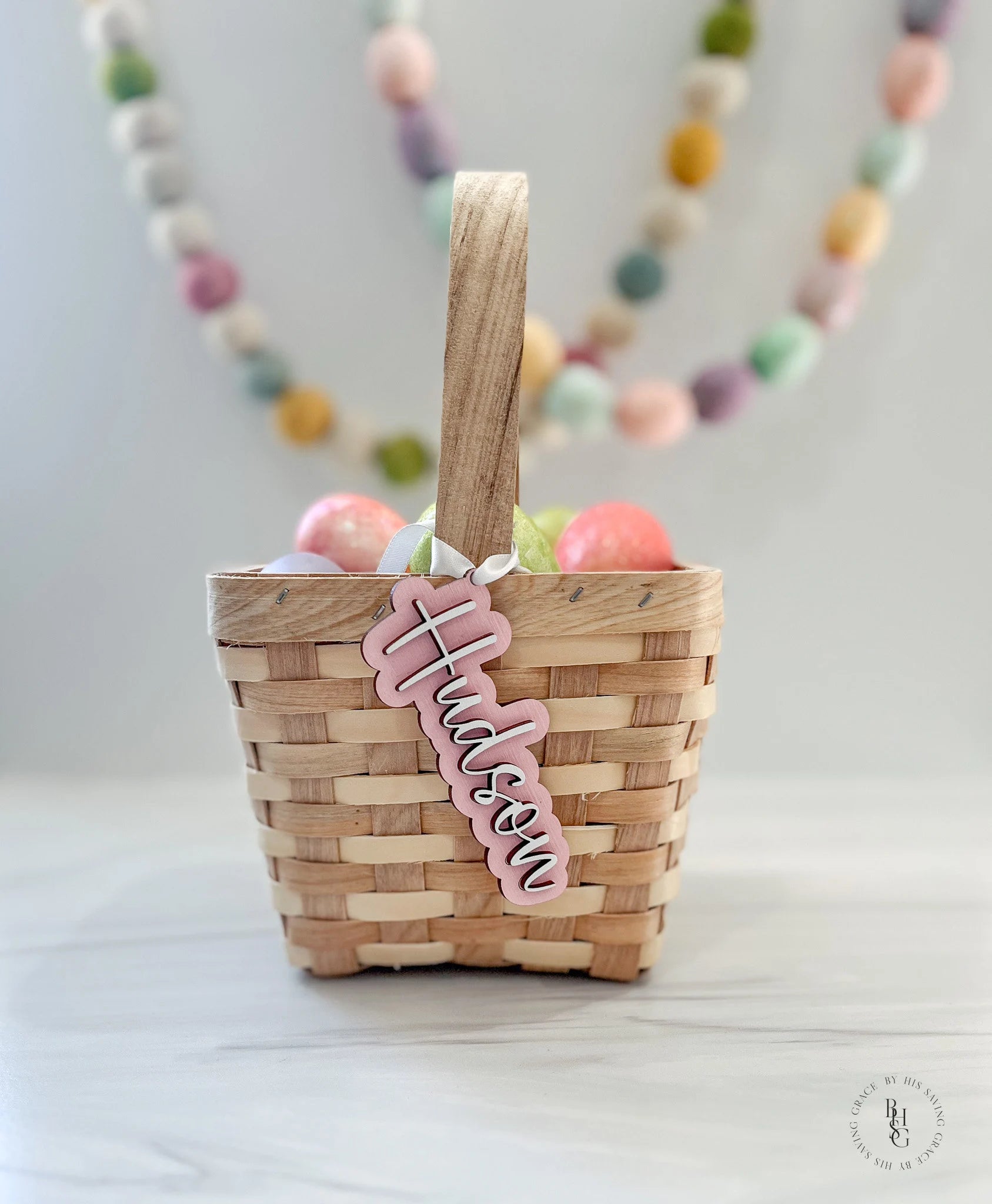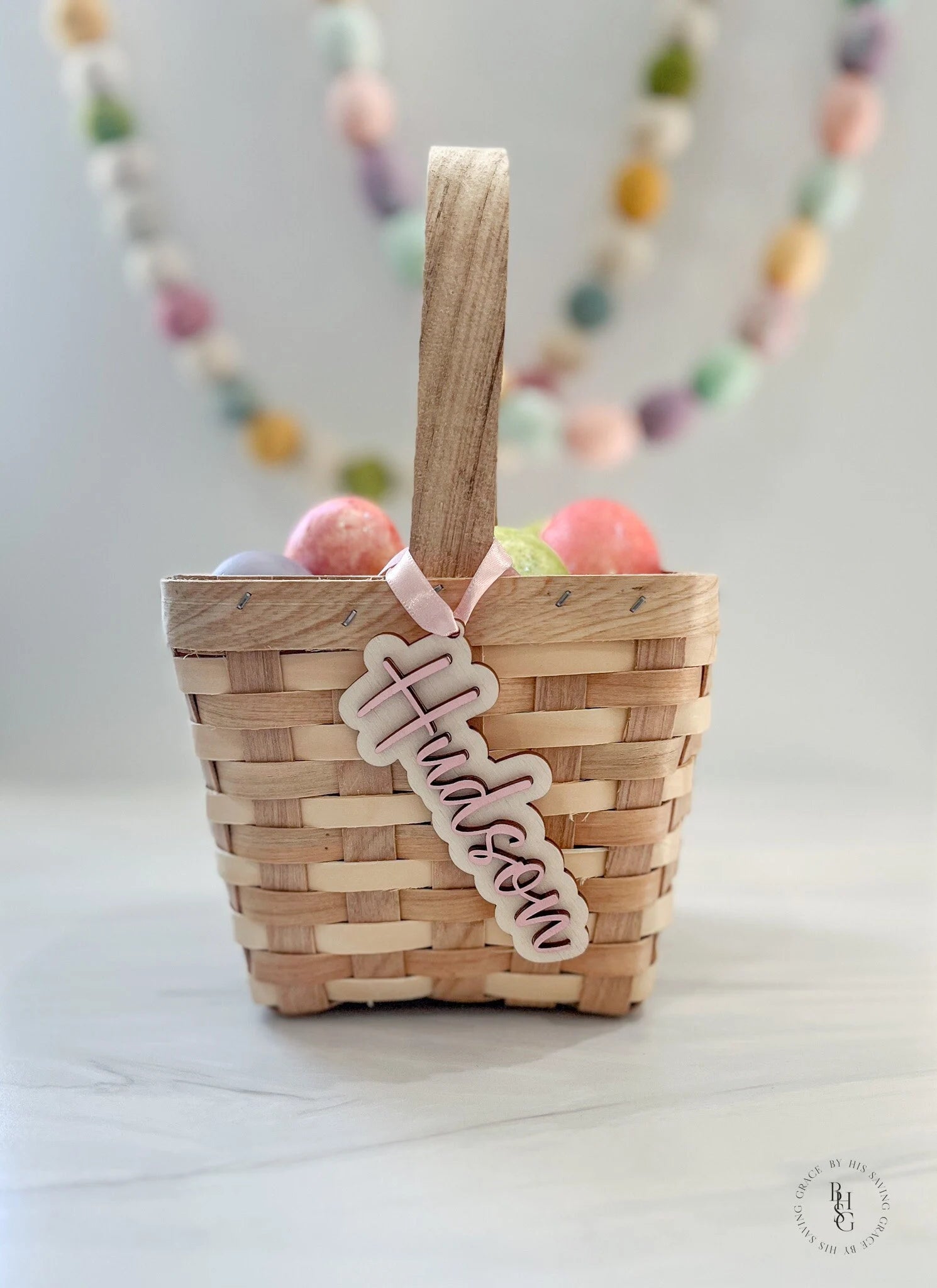 Add a special touch to your little's Easter basket with this adorable personalized wooden name tag! Offered in a variety of colors, it's a piece you will be able to use year after year.
