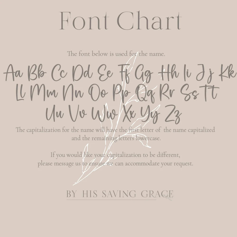 -4'' wide, and the height will vary based on the number of characters in the name.