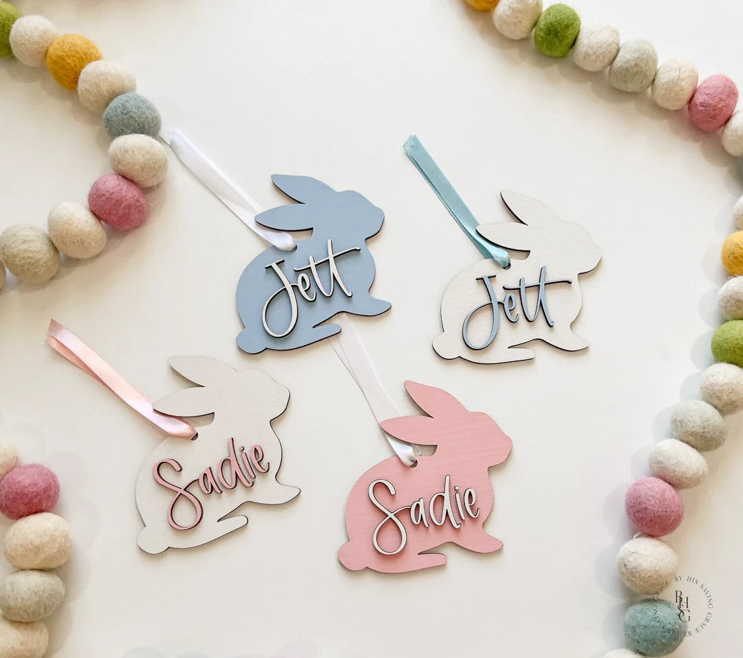 Add a special touch to your little's Easter basket with this adorable personalized wooden name tag! Offered in a variety of colors, it's a piece you will be able to use year after year.