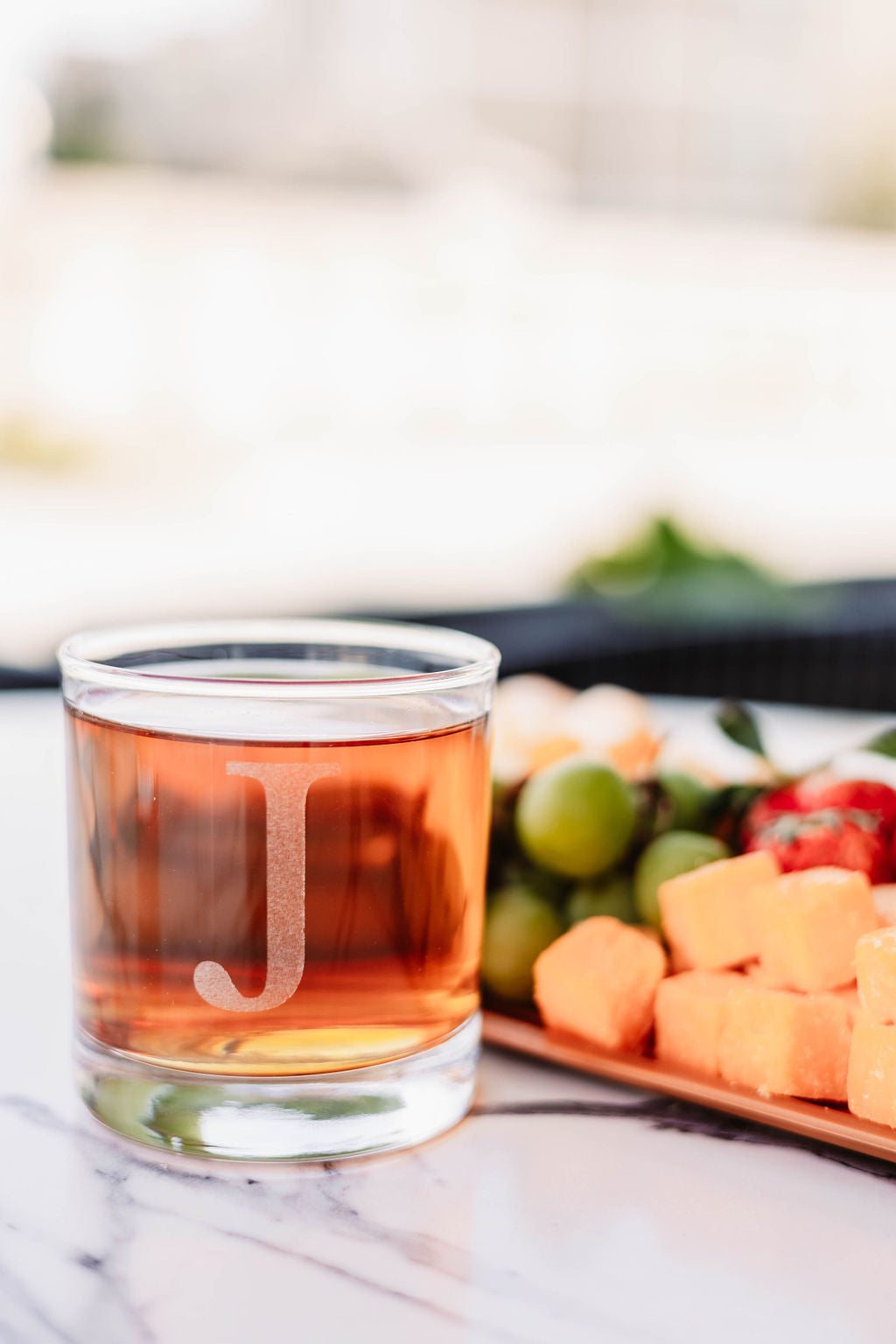 Our laser-etched rocks glass is personalized with your initial of choice and makes for great gifts for newlyweds, bridal parties, birthdays, or a housewarming party, to name a few!