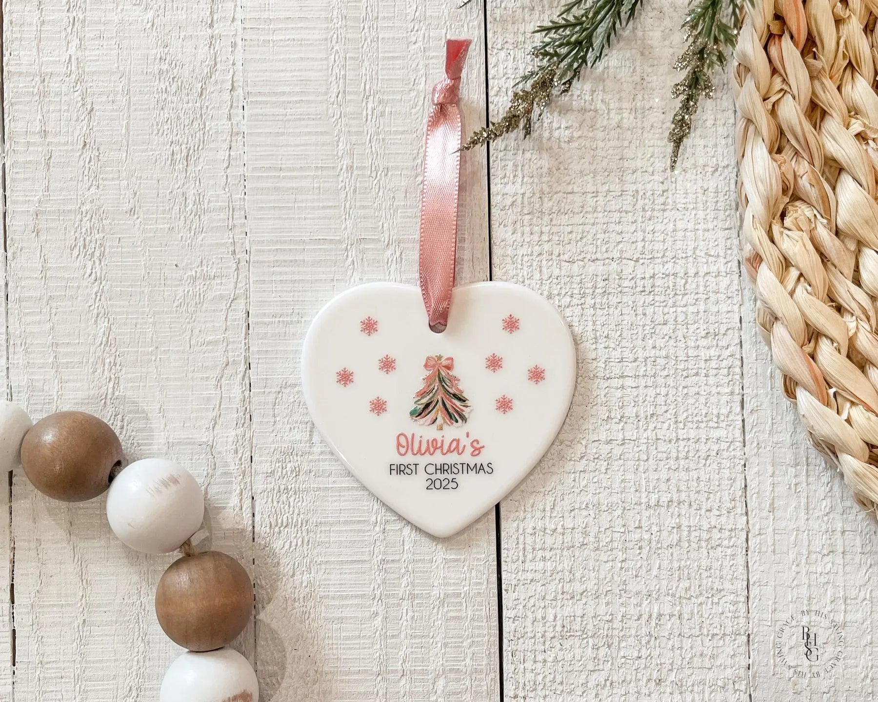 Celebrate your baby's First Christmas with our adorable UV-printed ceramic Christmas ornament! It is a beautiful keepsake printed with your little one's name and the year of your choice. A perfect ornament to look back on year-after-year.