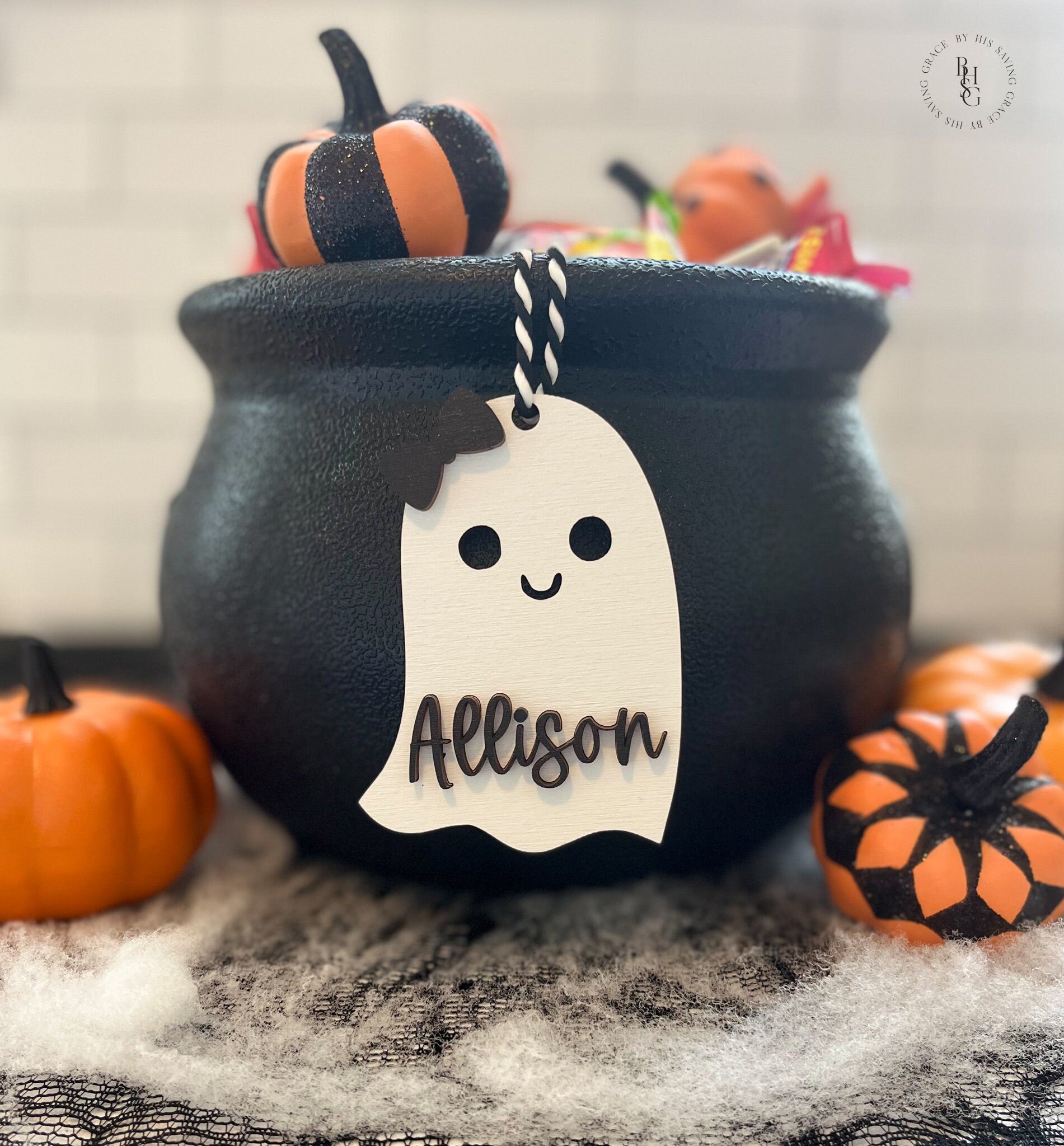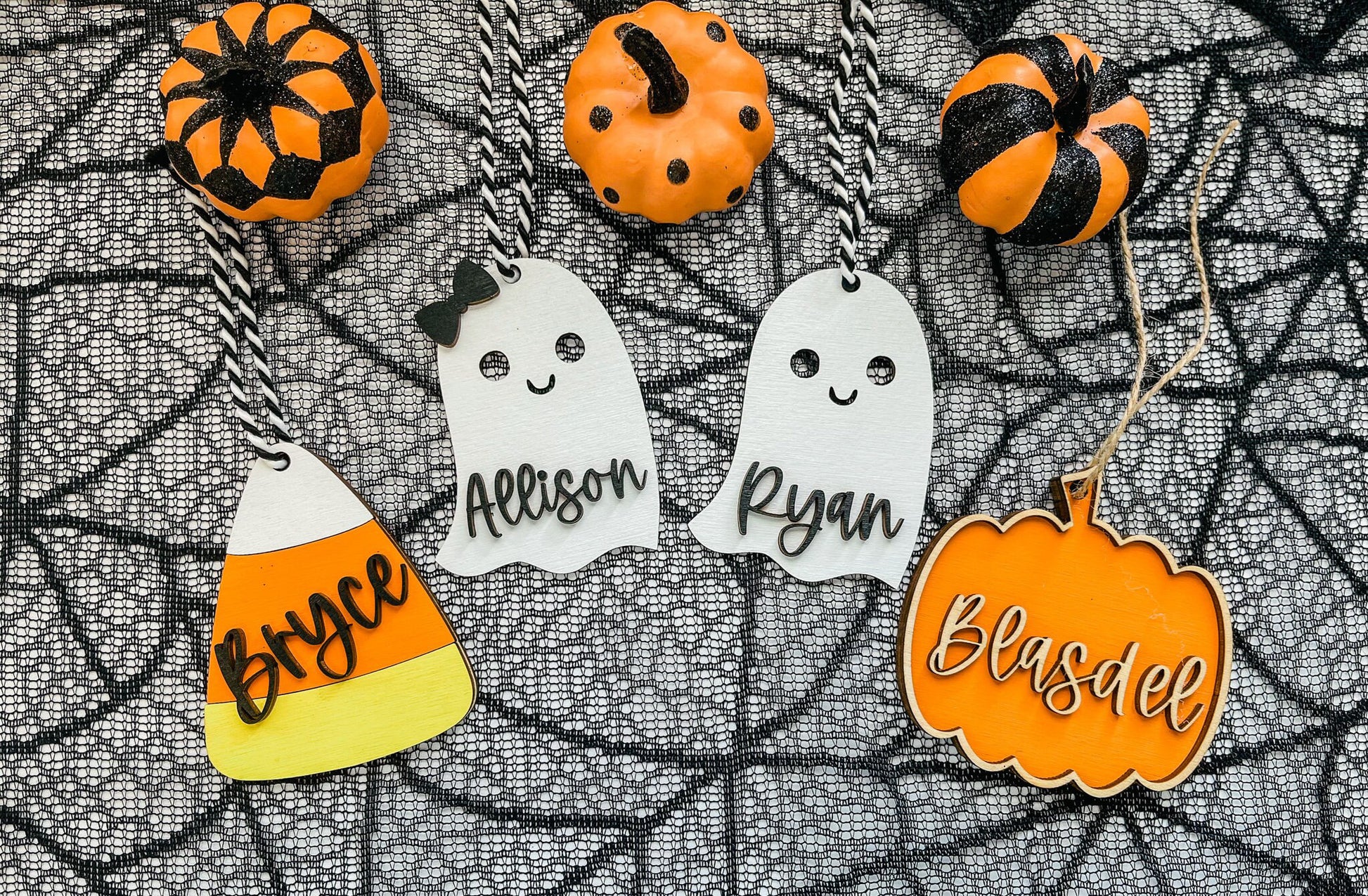 Personalize your kiddos' Halloween bag or candy bucket with our adorable, light-weight, laser-cut Halloween tag!