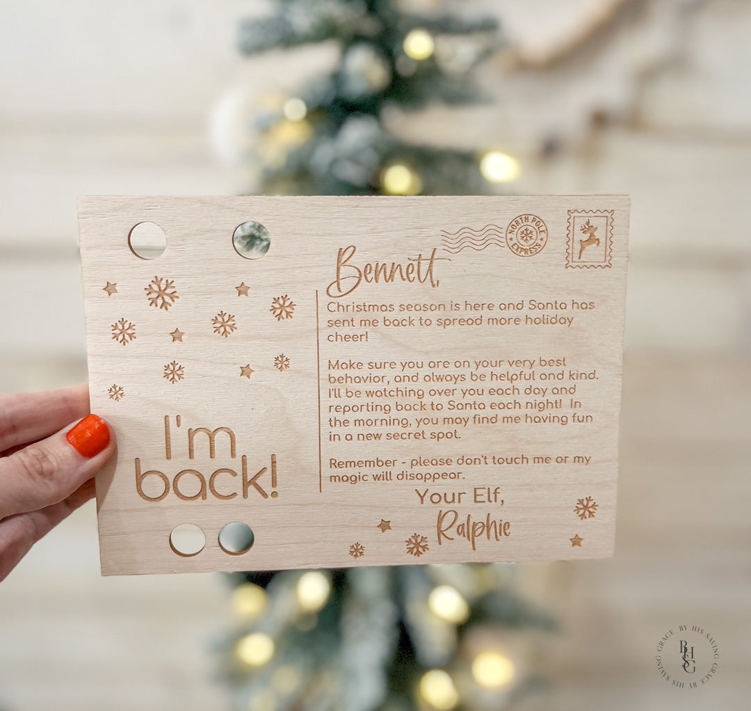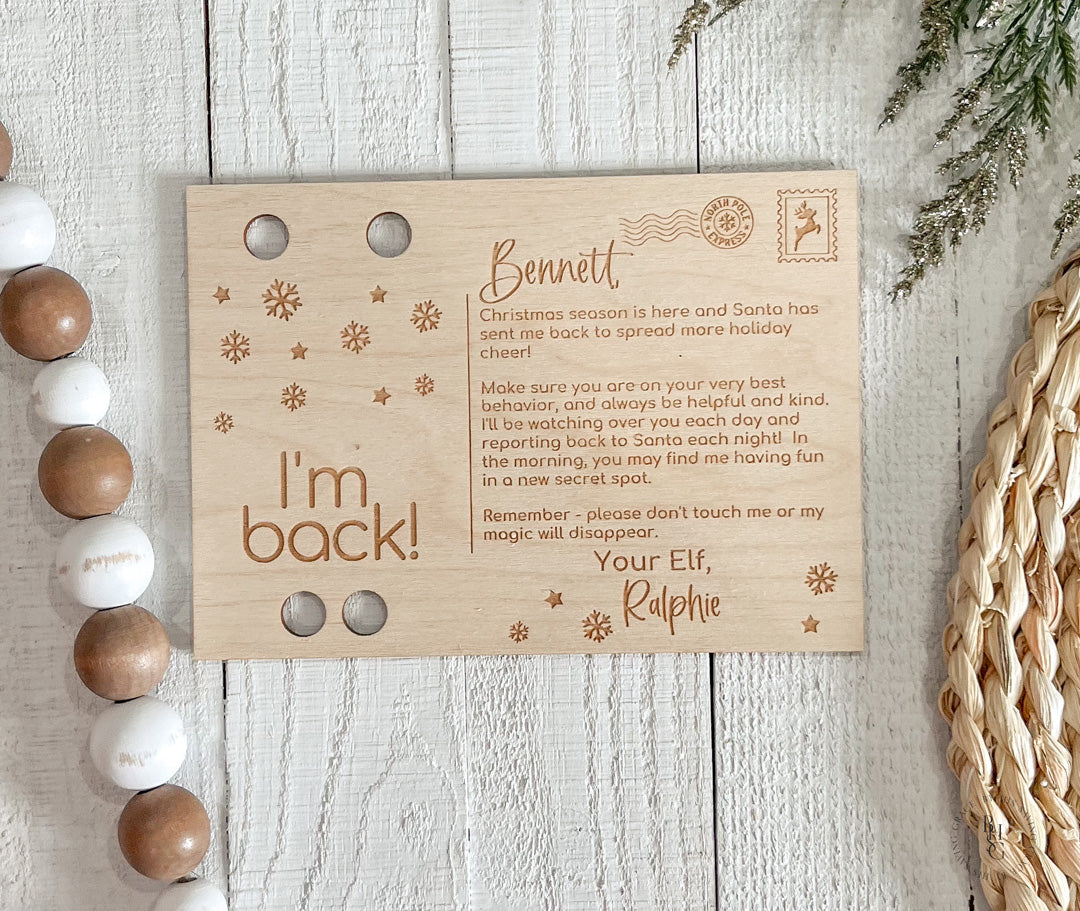 Let your little ones know their Elf is back with our "I'm Back" Postcard. Personalize with the elf and child's name to make it extra special.