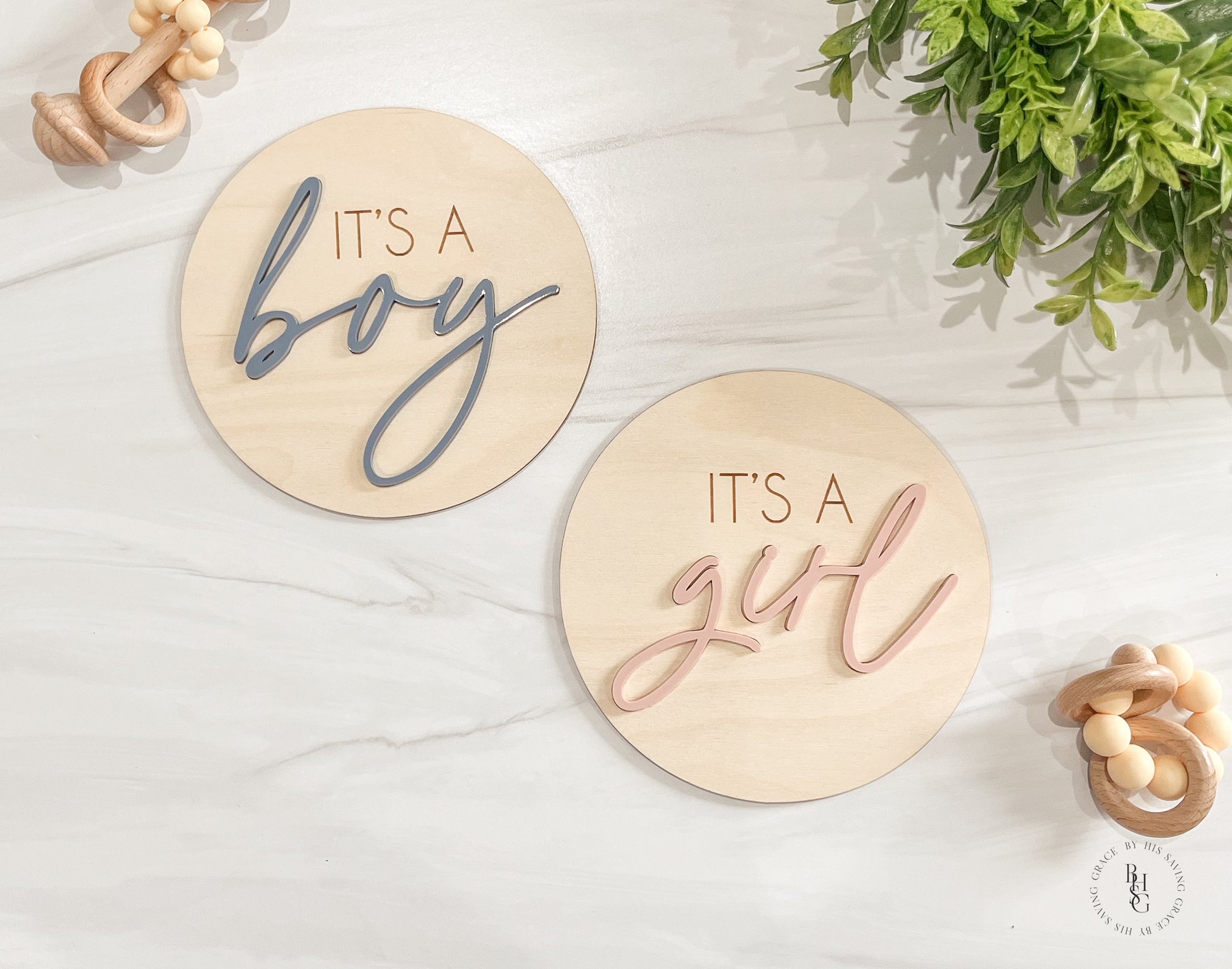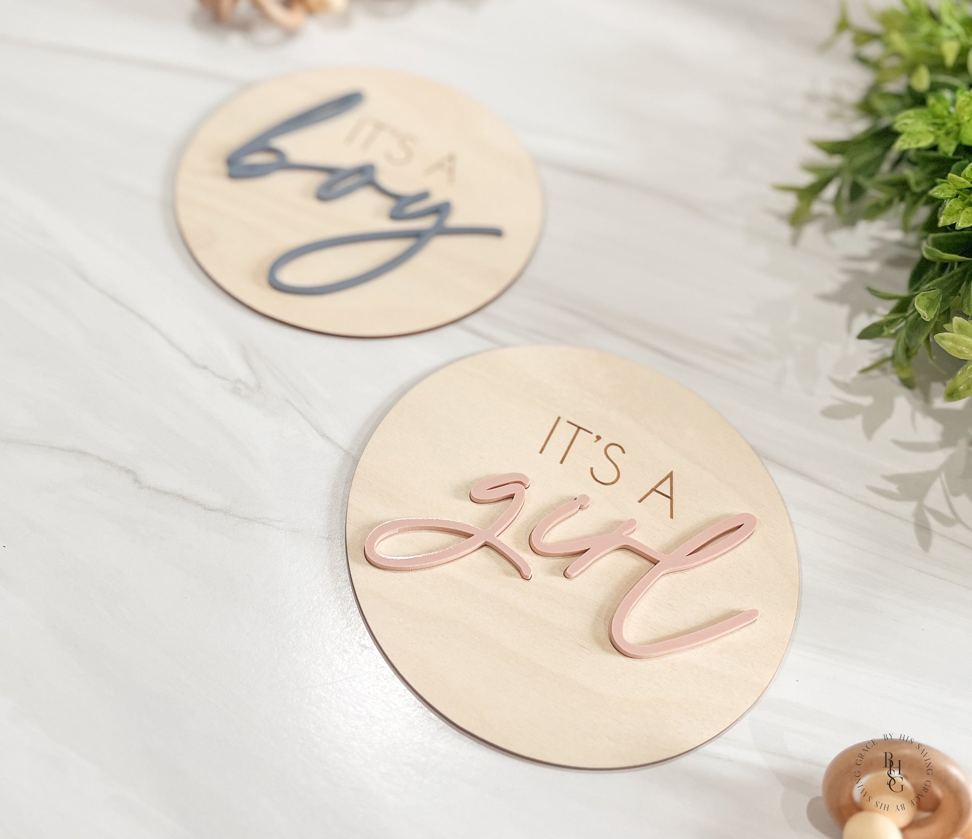 This adorable laser-cut It's A Boy or It's A Girl announcement sign is a perfect way to announce your pregnancy or the birth of your baby.