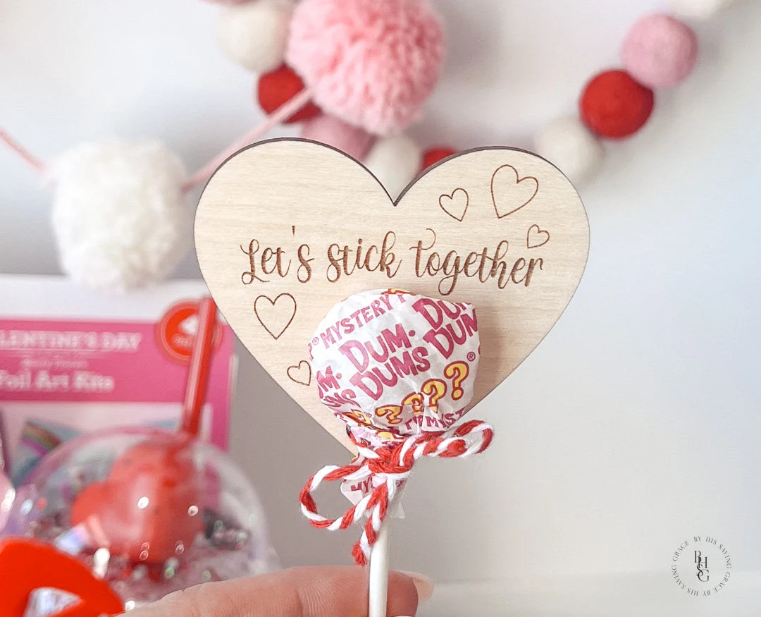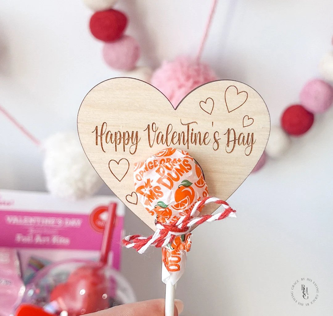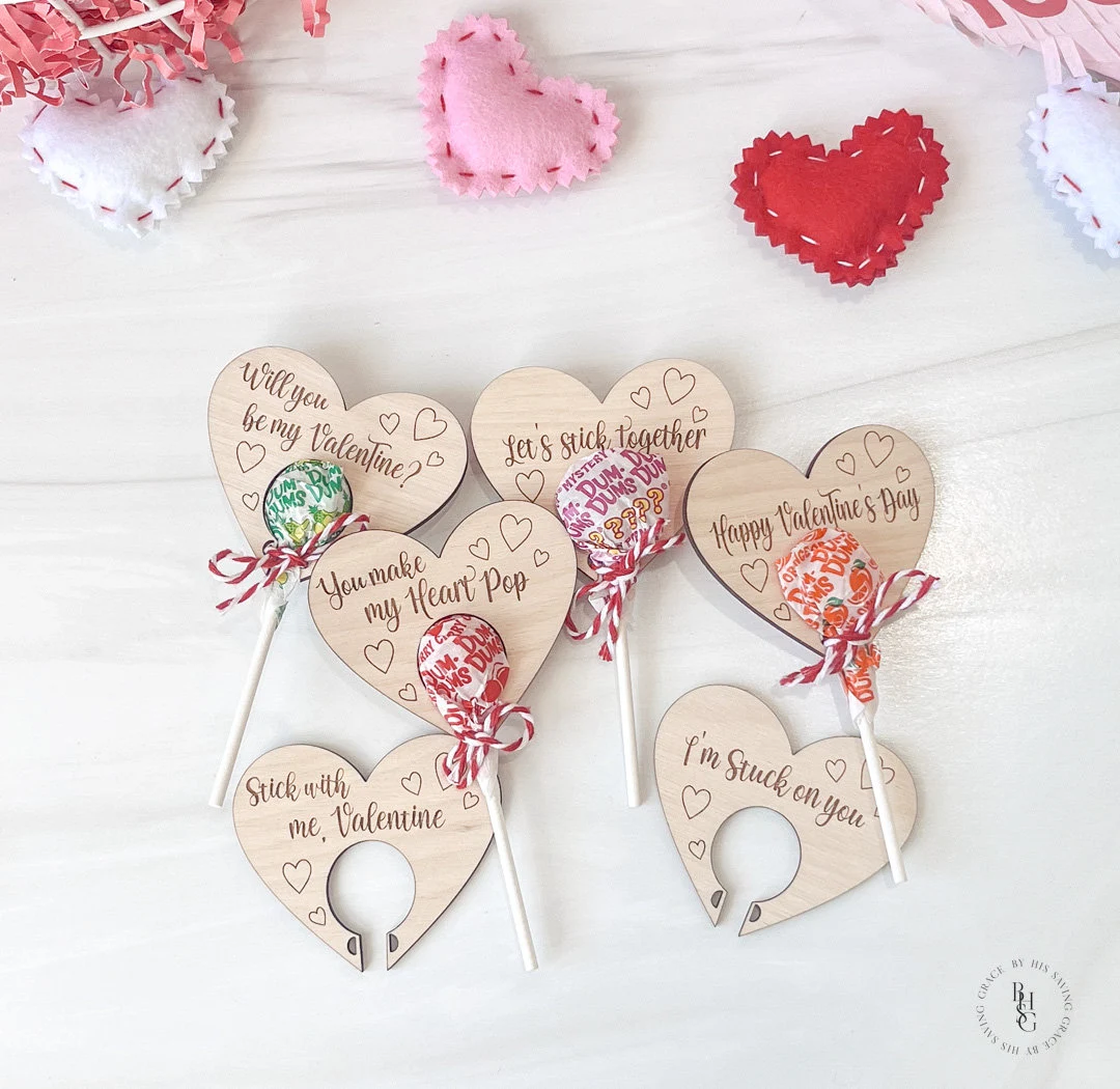 This adorable lollipop Valentine's holder is a perfect gift for kids, friends, and classmates, to name a few! They fit perfectly with a dum-dum sucker. The sucker is not included, but the twine to hold the sucker in place is.