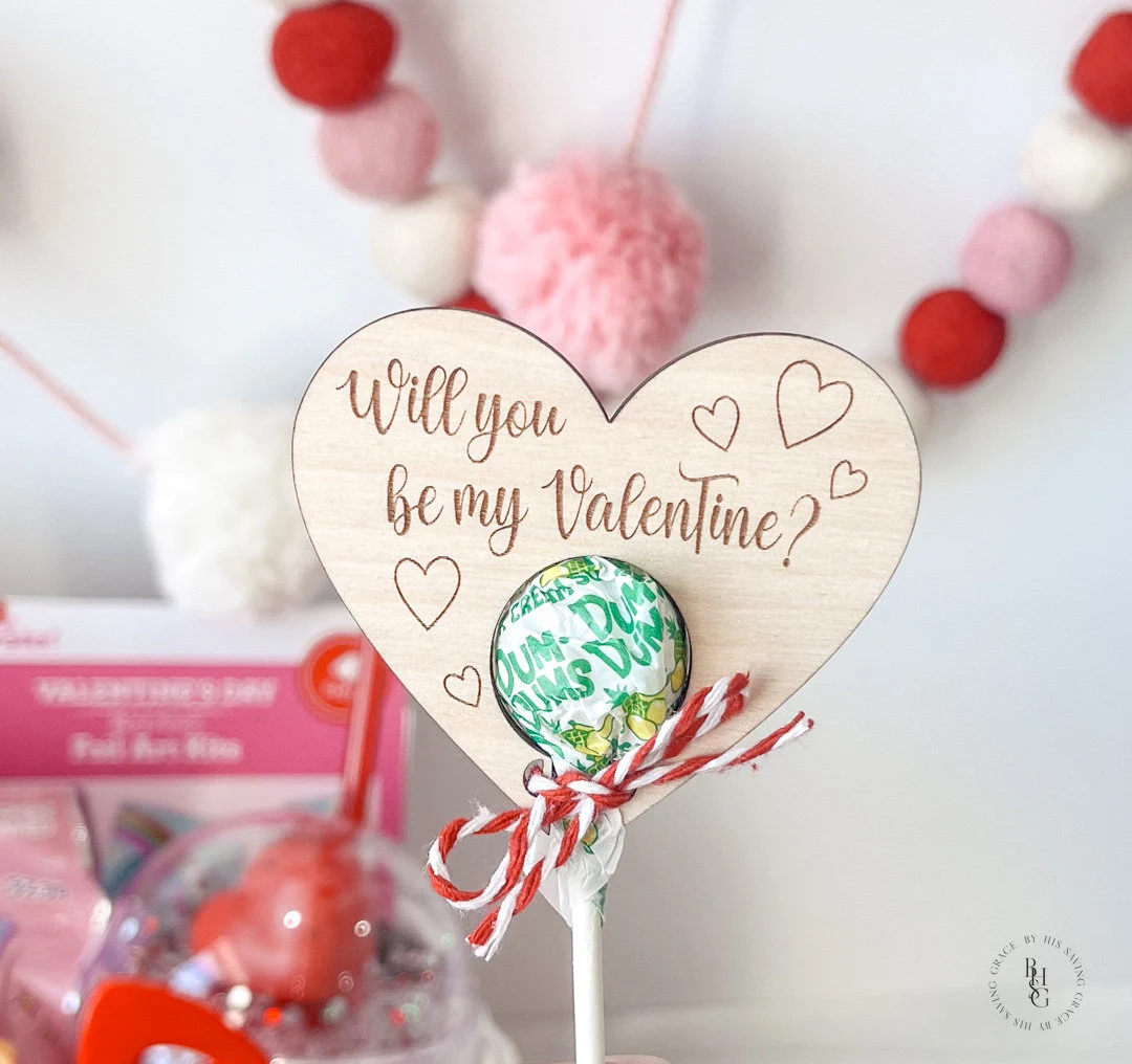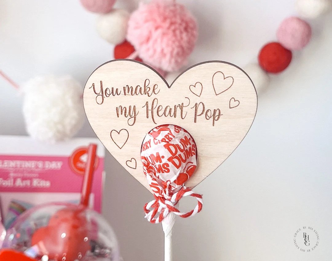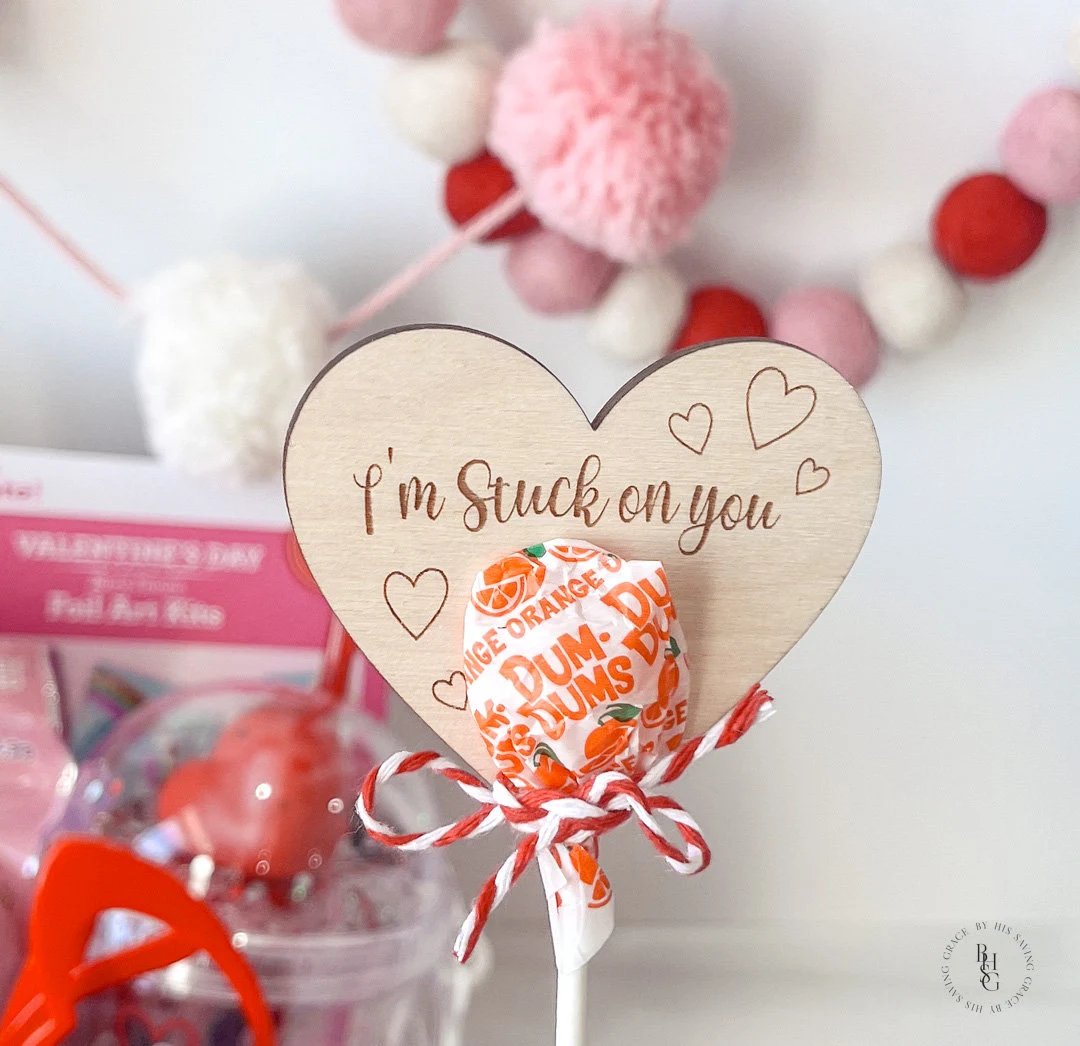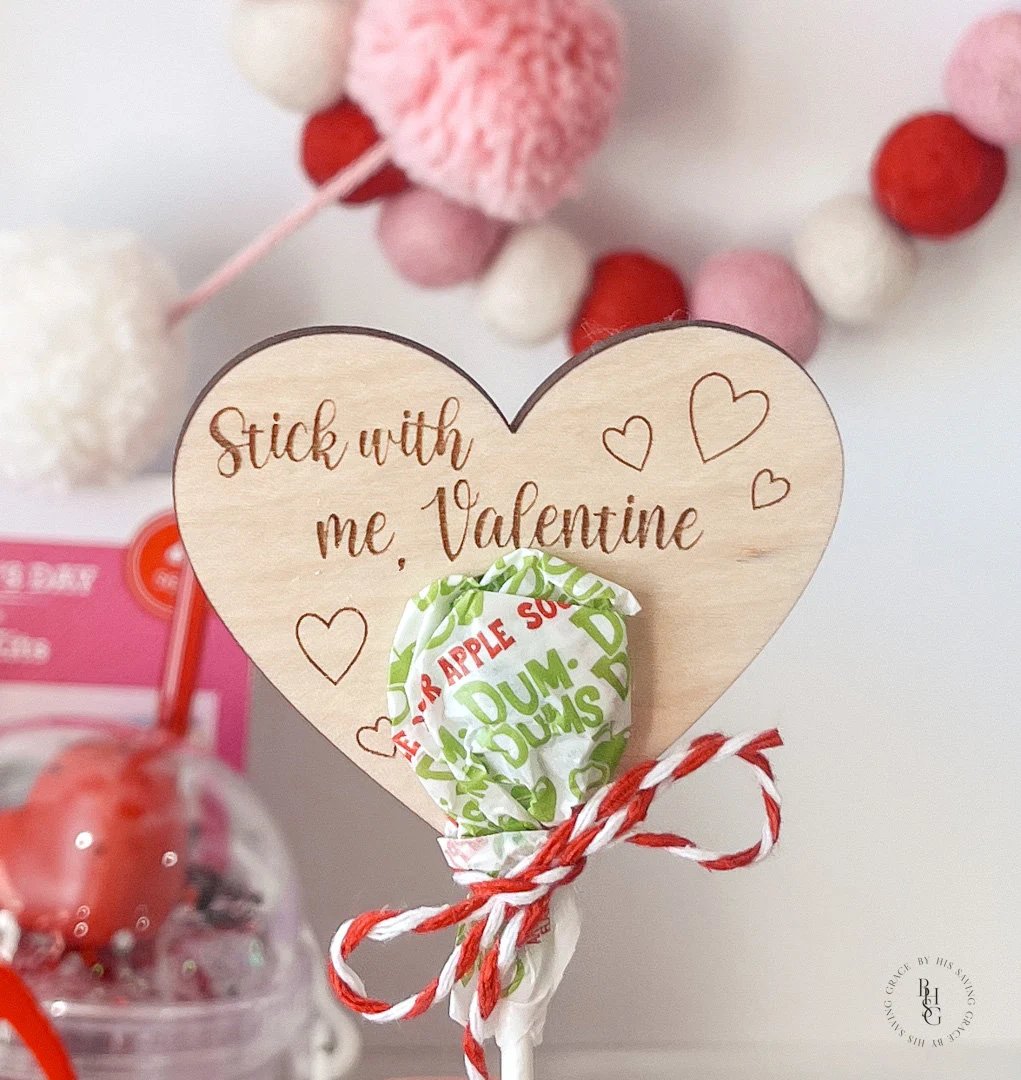 This adorable lollipop Valentine's holder is a perfect gift for kids, friends, and classmates, to name a few! They fit perfectly with a dum-dum sucker. The sucker is not included, but the twine to hold the sucker in place is.