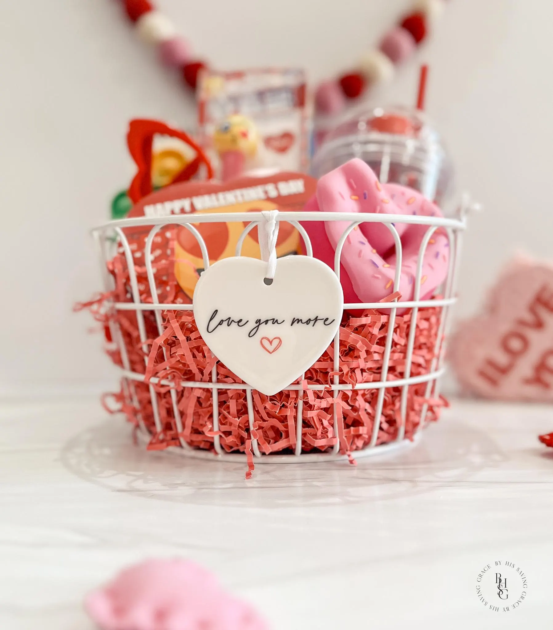 This adorable "love you more" ceramic ornament features a UV printed design, and is a great gift that will be a lifetime keepsake.