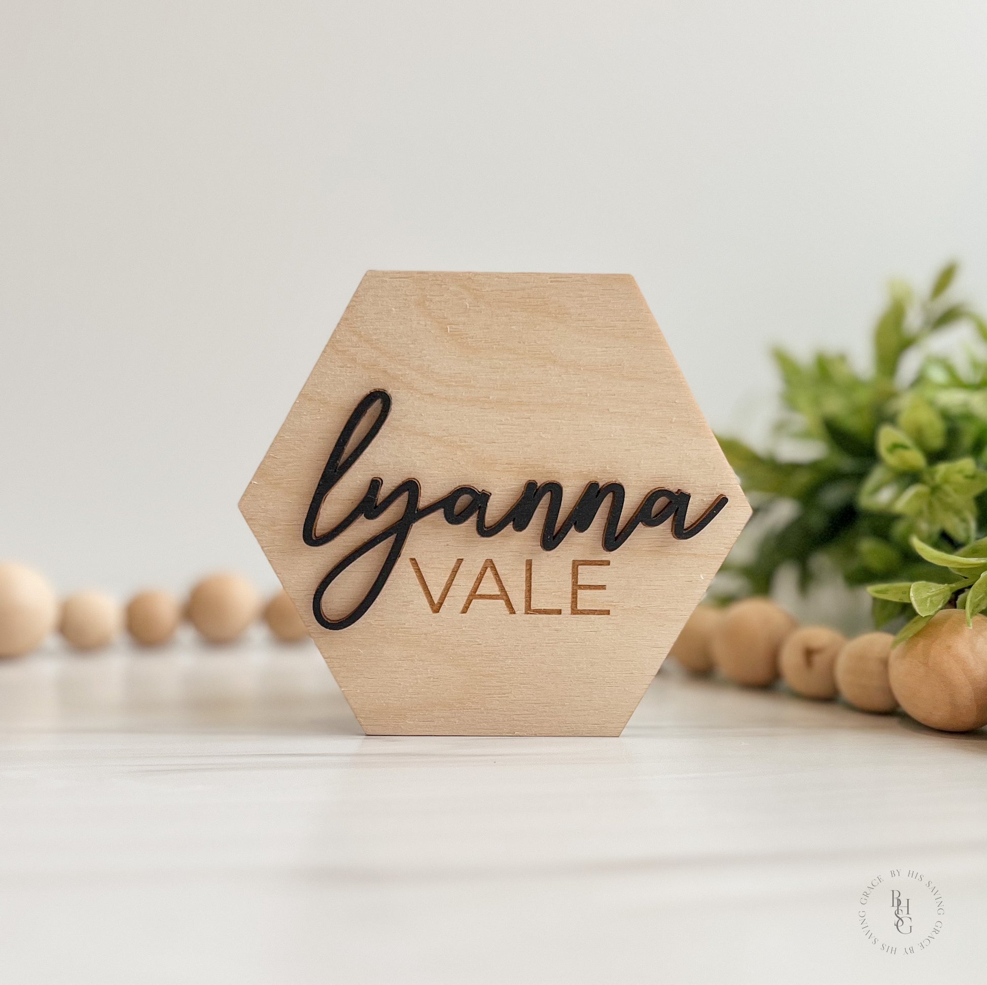 Matching 3D Hexagon Monthly Milestone Baby Name Announcement Sign