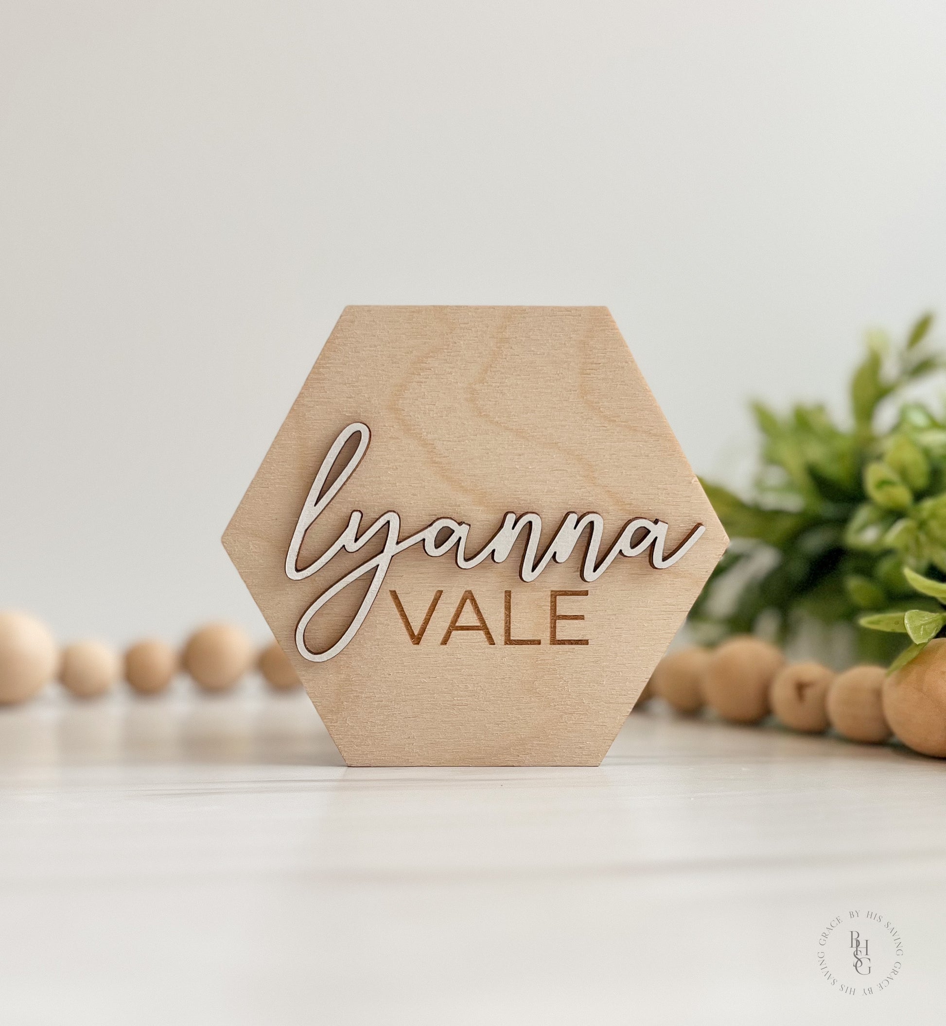 Matching 3D Hexagon Monthly Milestone Baby Name Announcement Sign