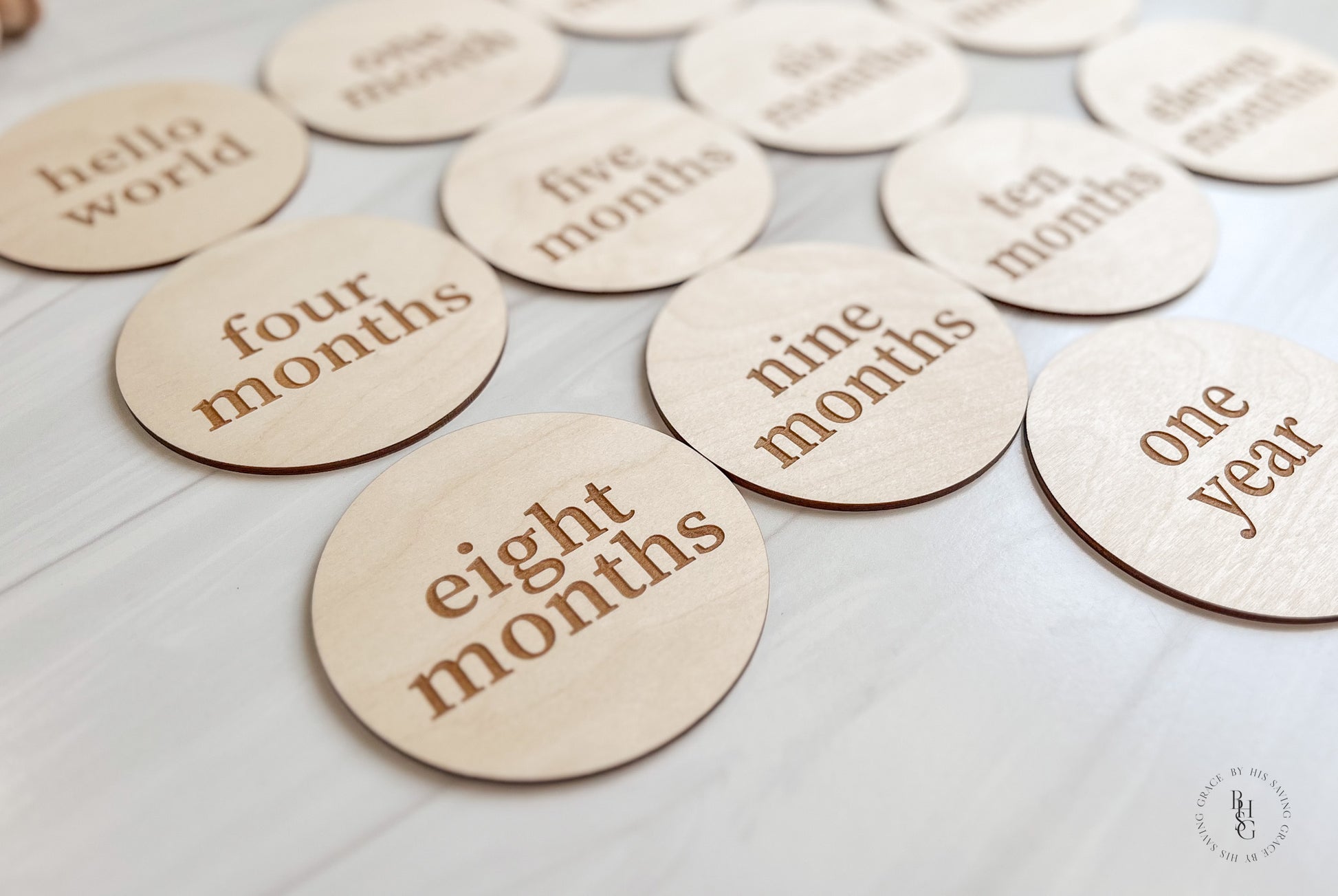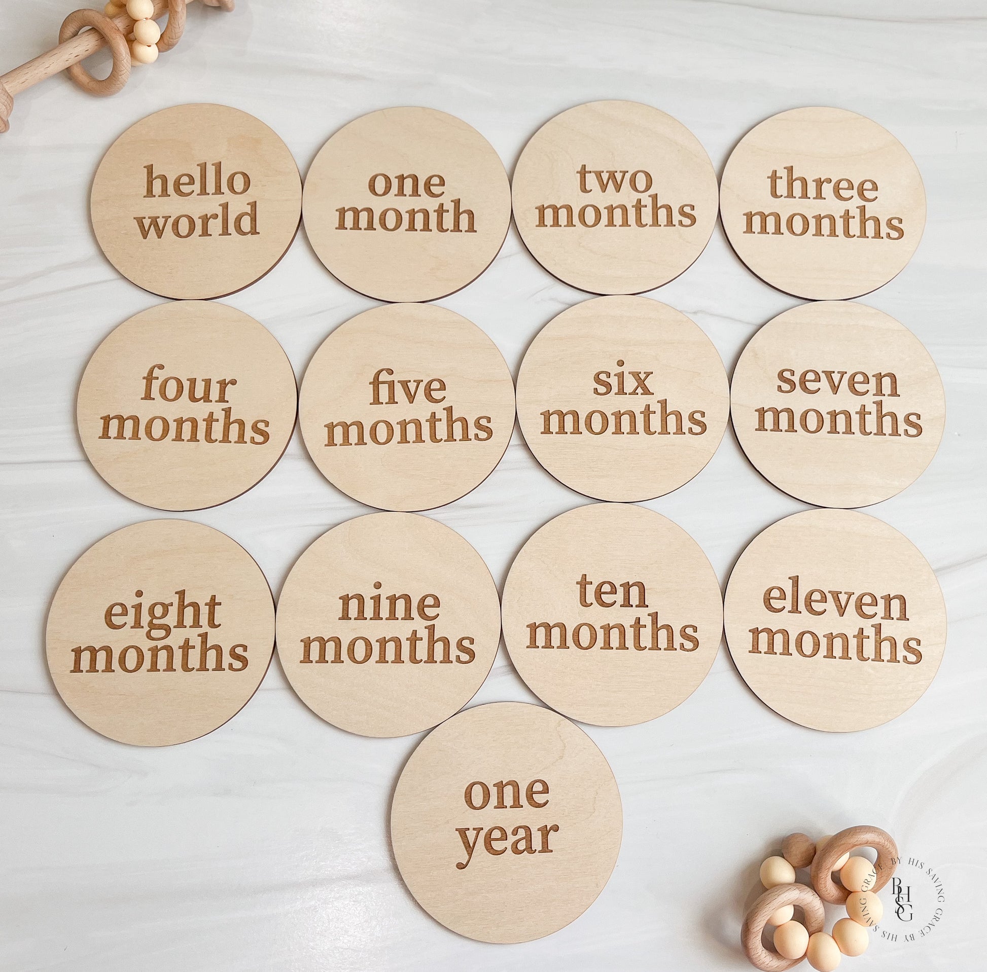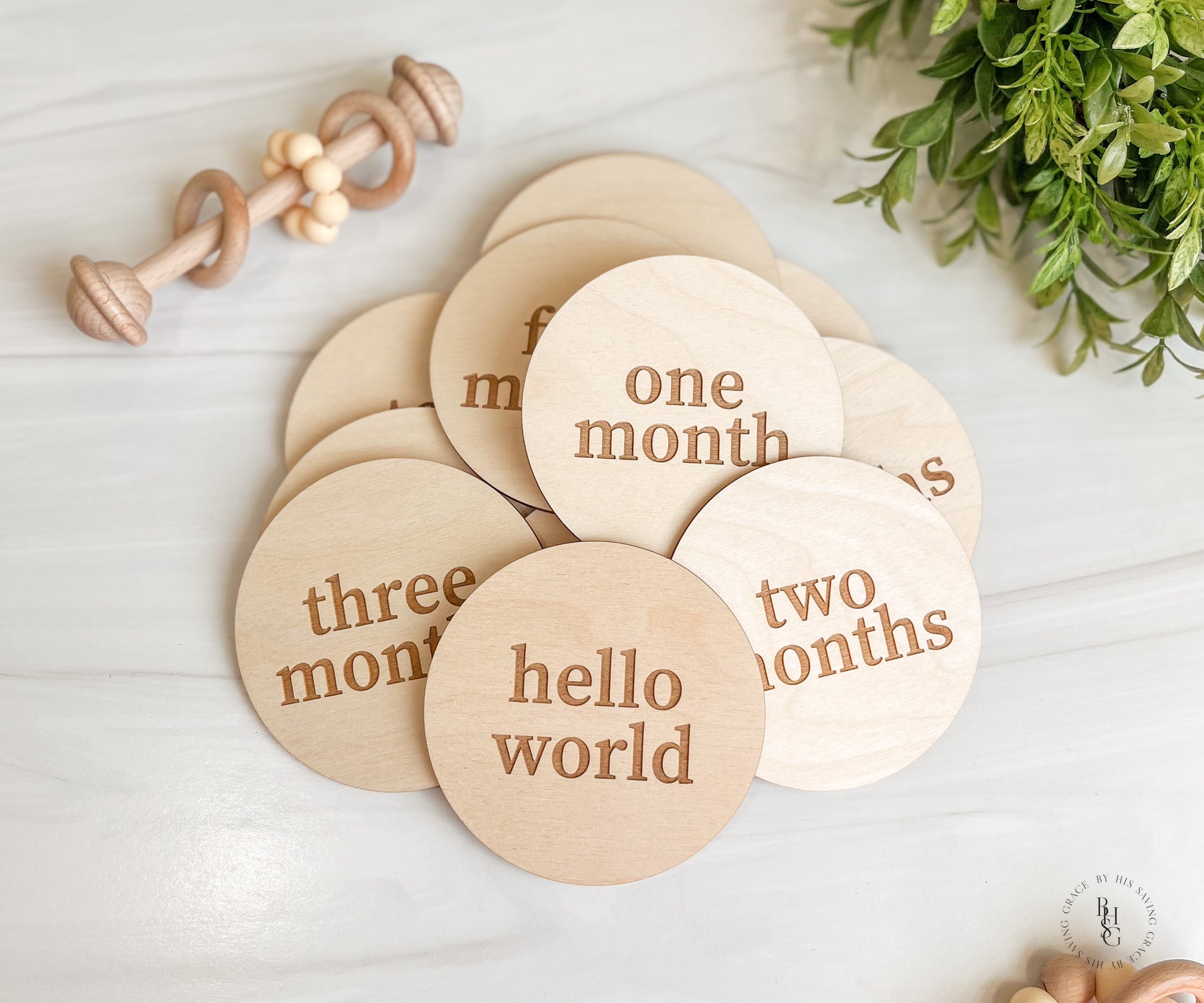 Modern Wooden Monthly Milestone Discs For Baby Photos