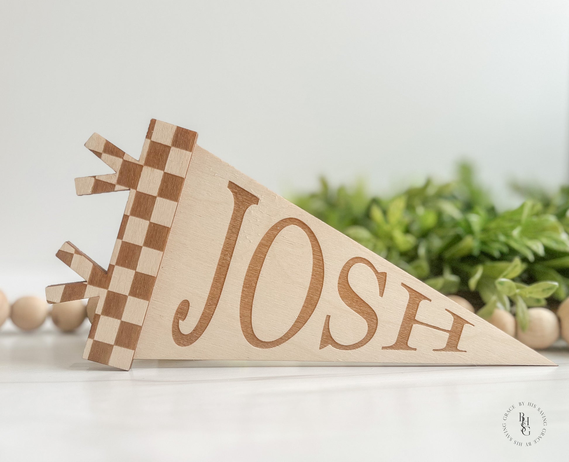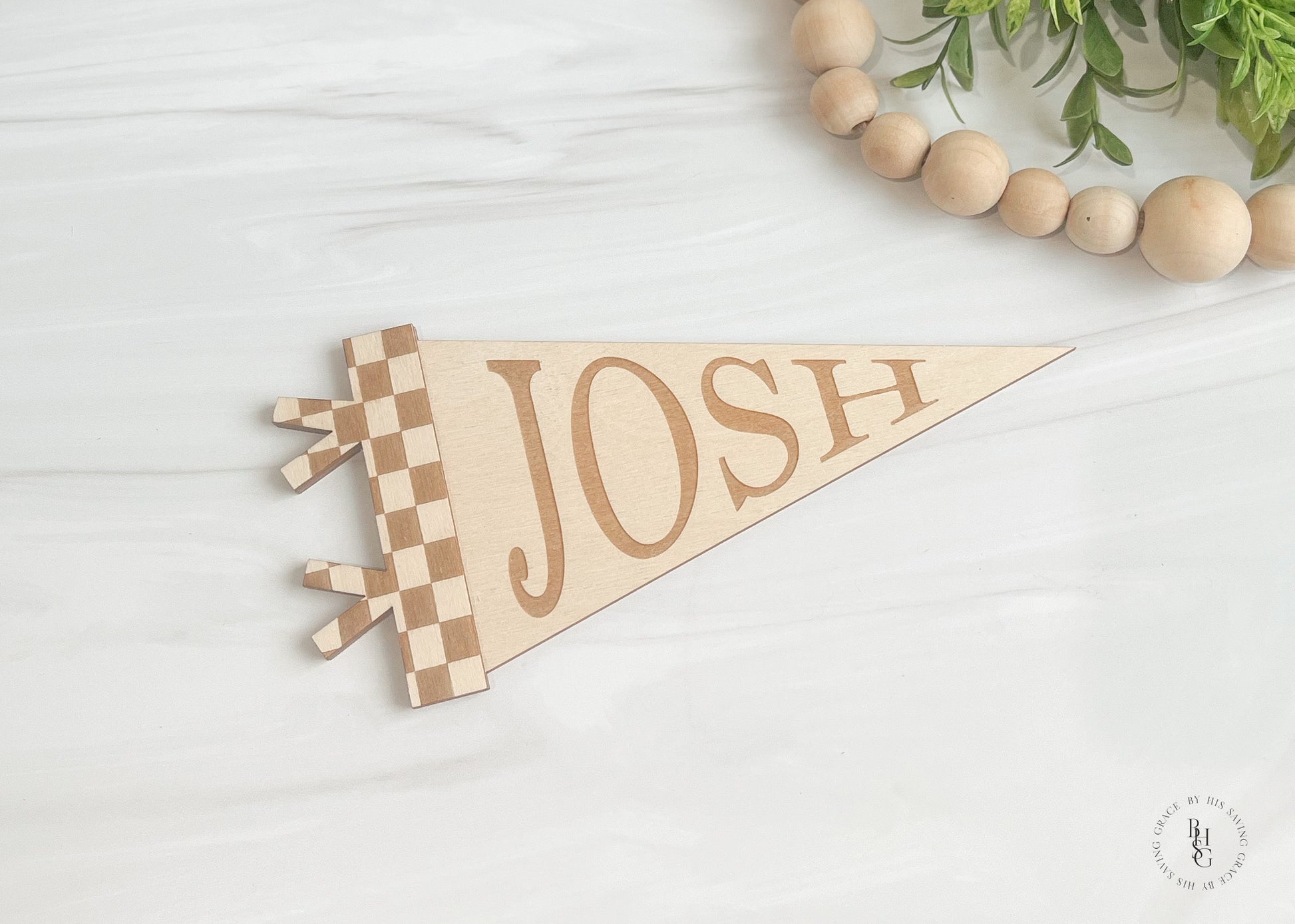Wooden Checkered Pennant Name Flag