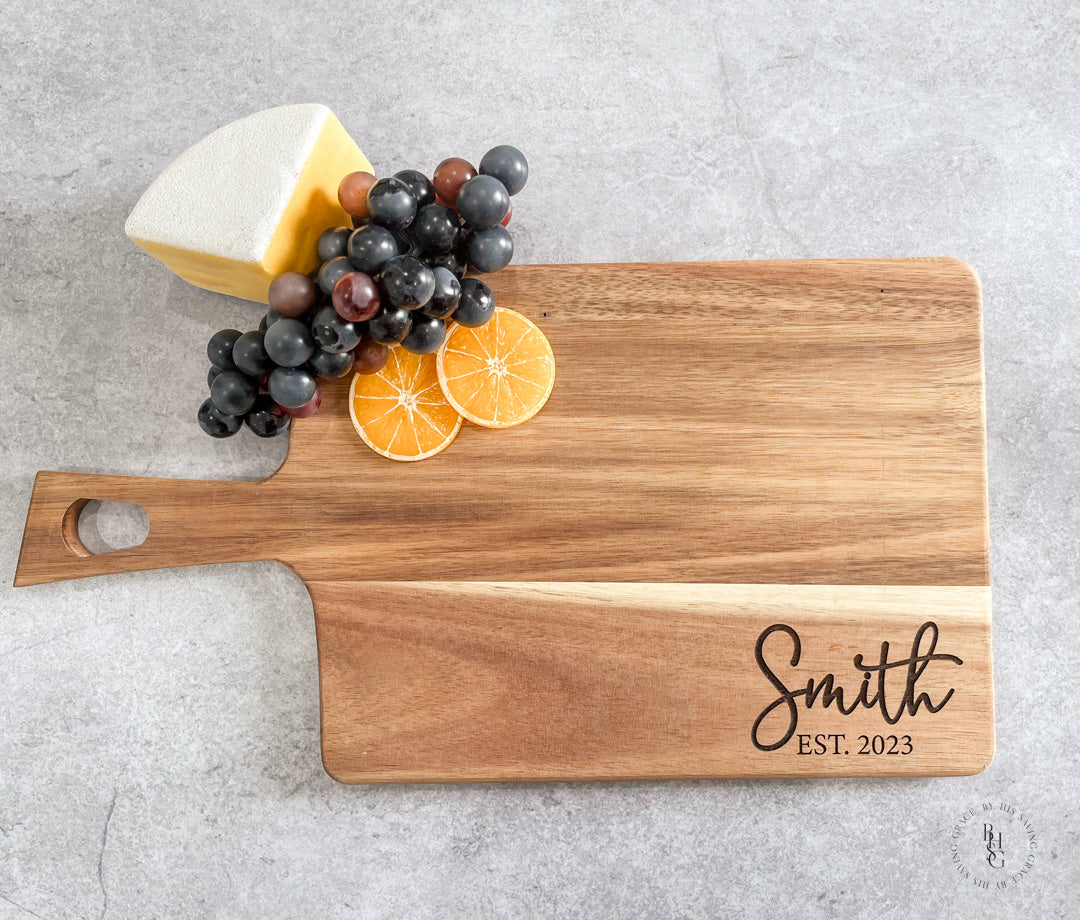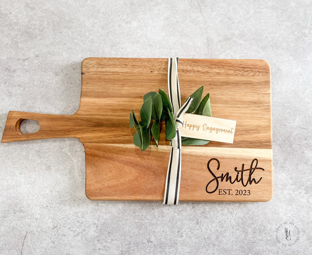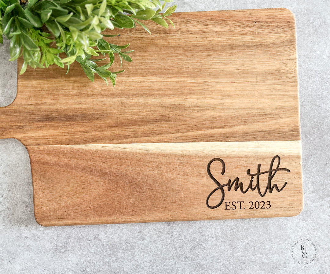 Personalized Acacia Wood Serving Board With Last Name + Est. Date