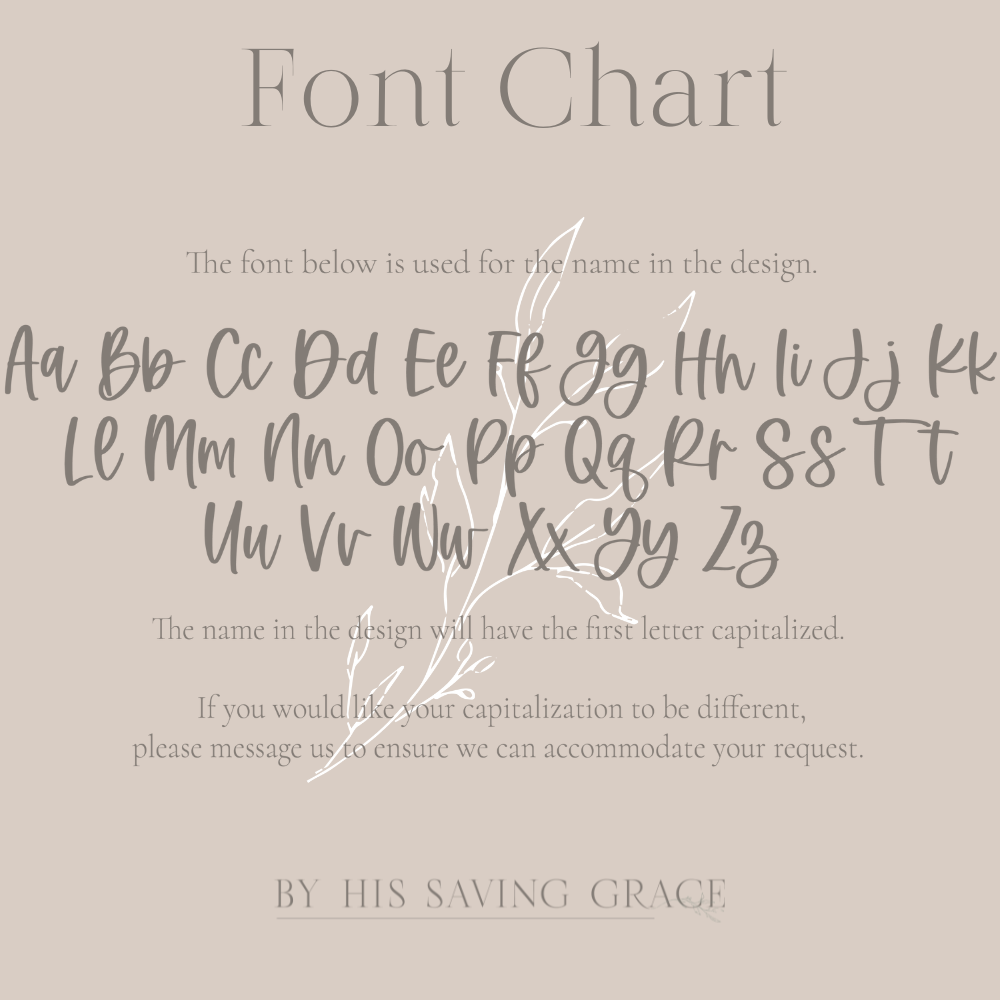 The size of the name will vary based on the number of characters in the name. A digital proof of how your nameplate will look can be purchased here.