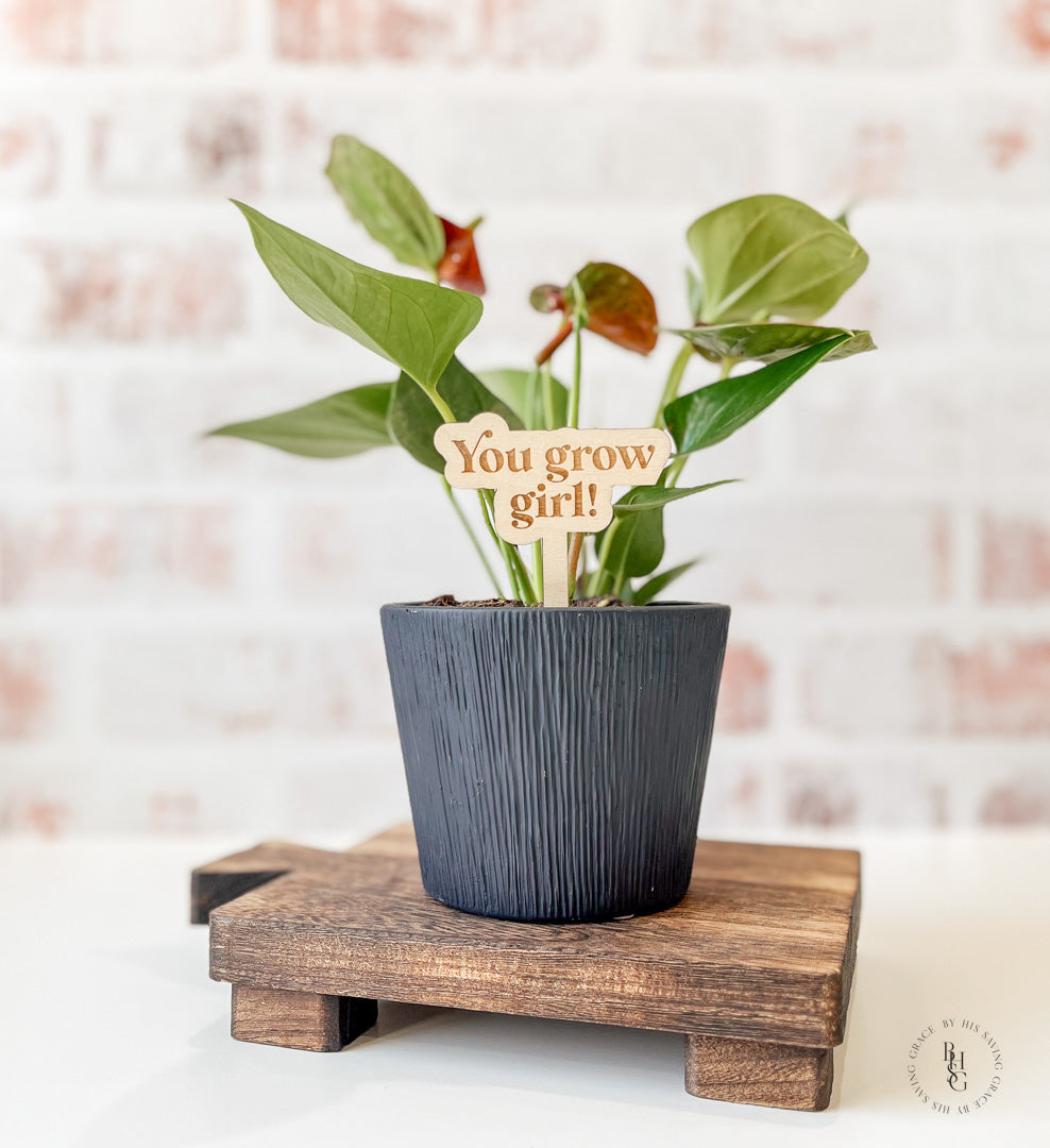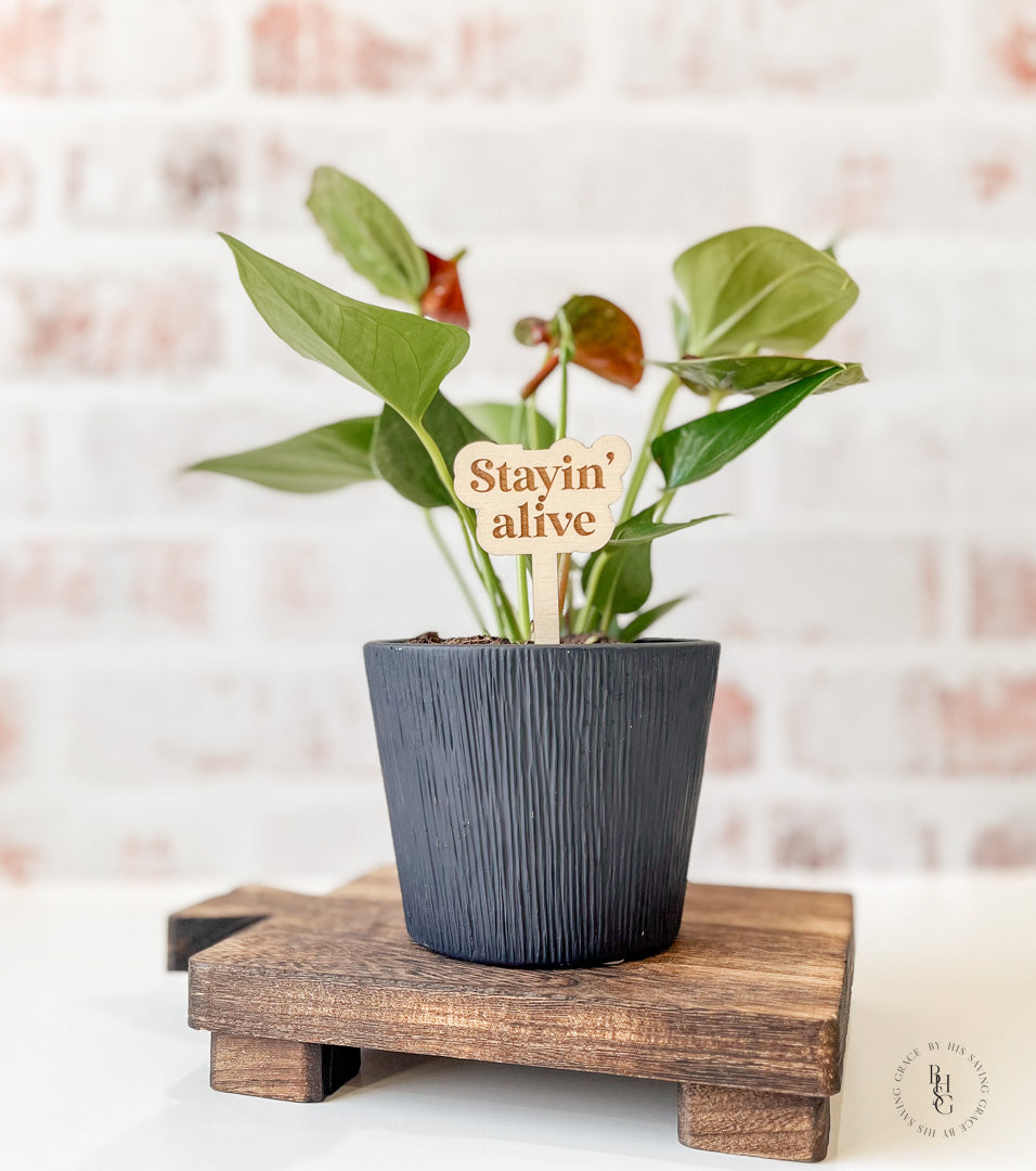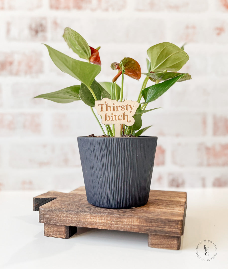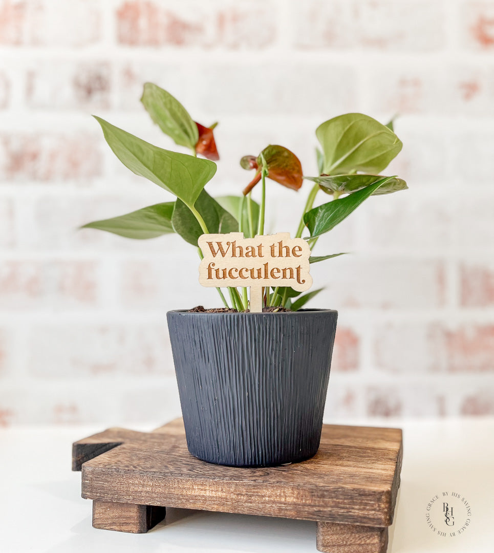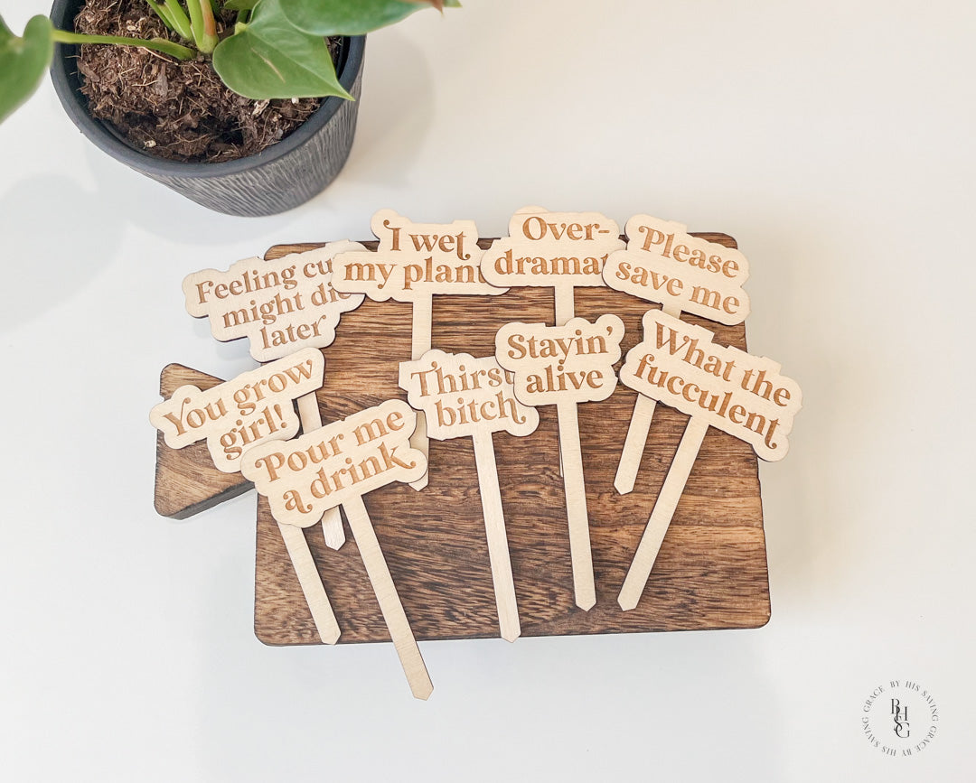 Our laser-cut and engraved funny plant stakes are a fun way to add humor to your plants!