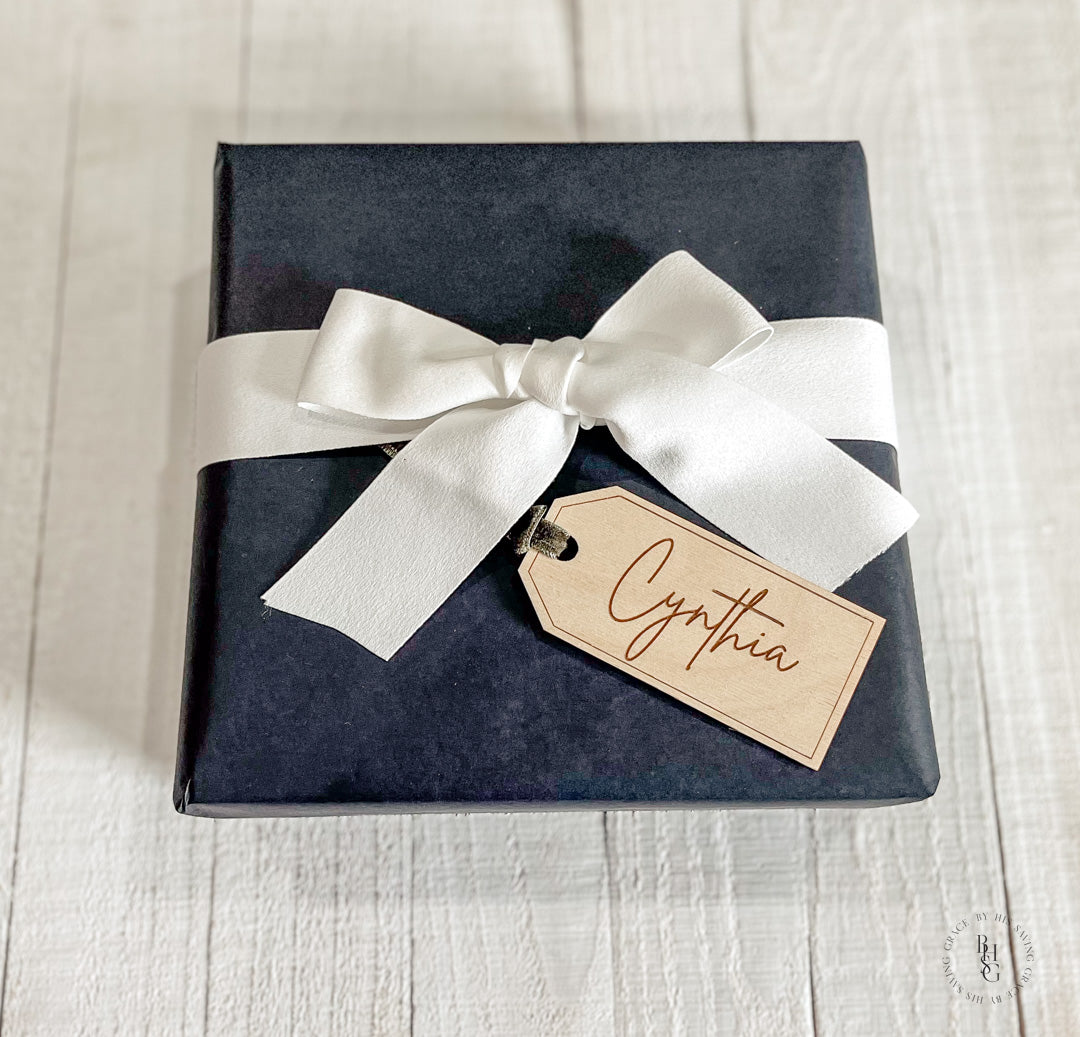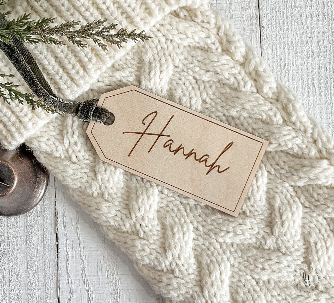 Our laser-cut and engraved stocking tags are personalized with your name of choice. The tags also make great gift tags and can be used year after year!