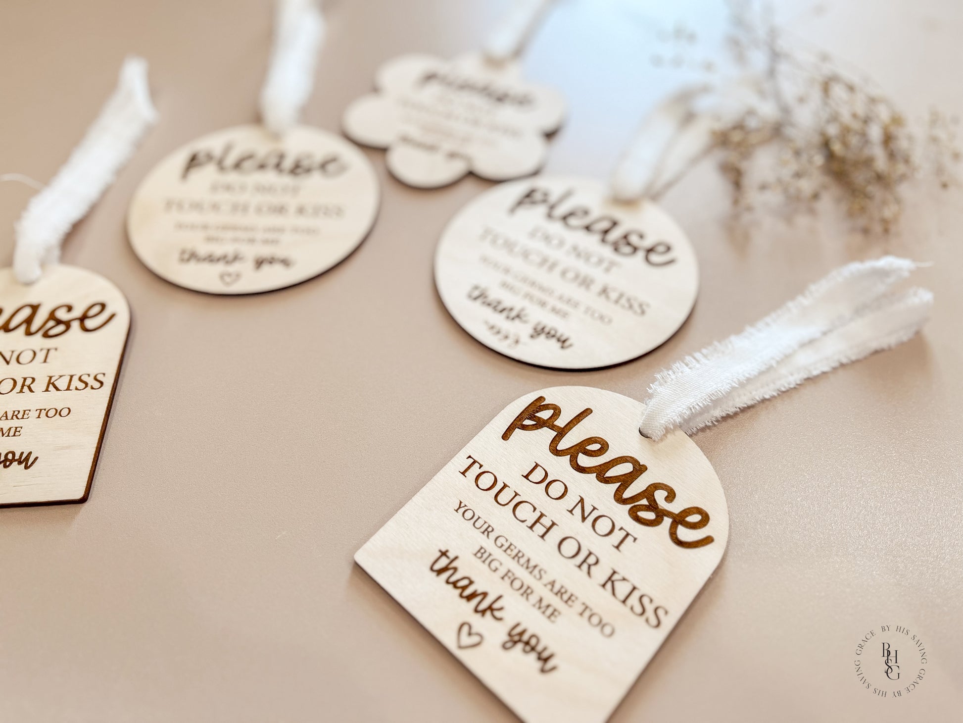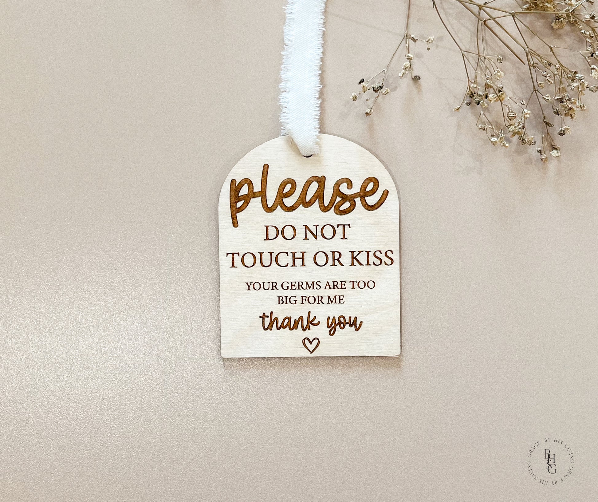 Protect your little one from unwanted touches with this laser-engraved wooden "Please Do Not Touch" baby car seat sign. Simple, elegant, and effective.