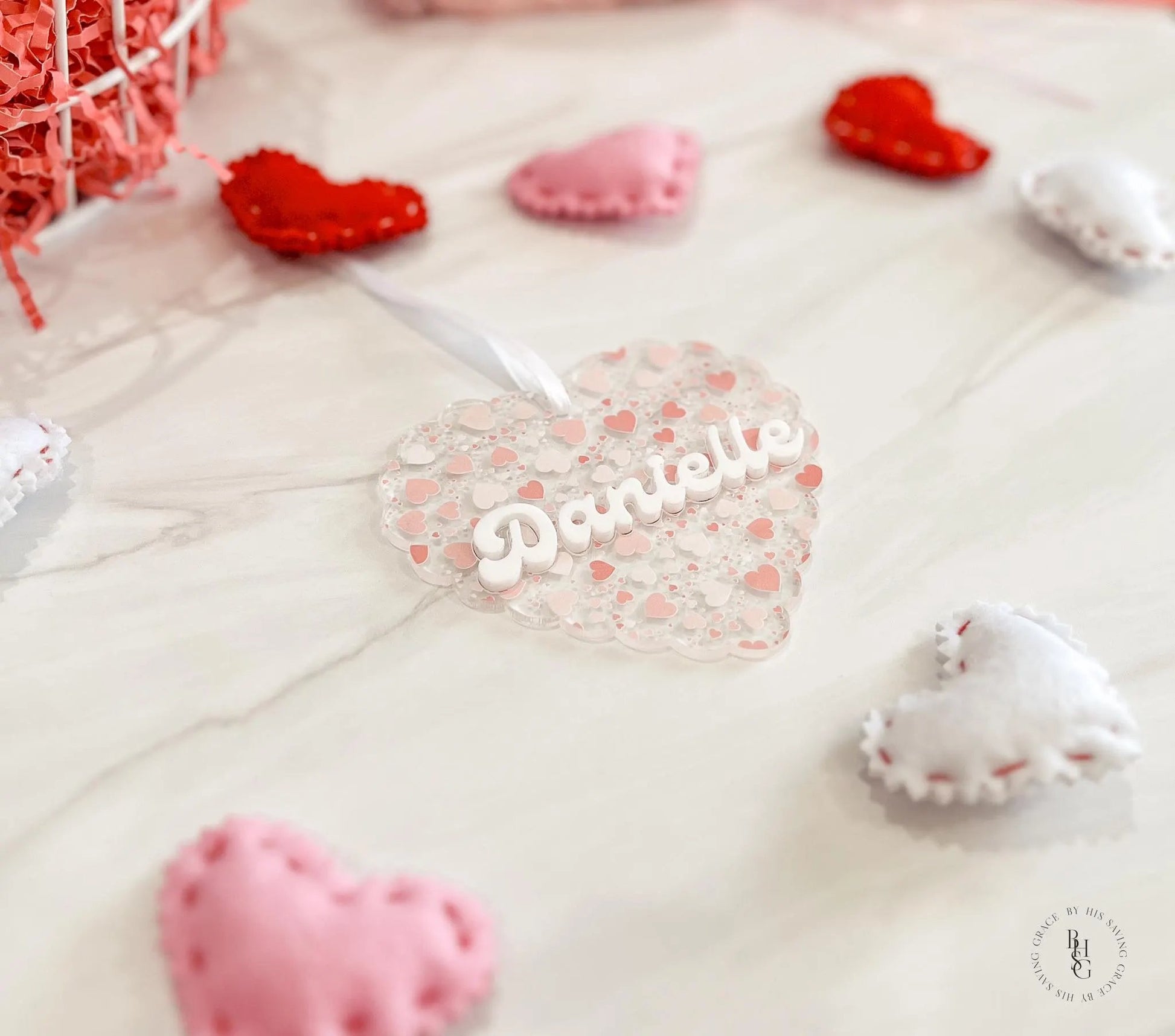 Personalize any Valentine's Day gift with this adorable, lightweight scalloped heart featuring your name of choice!