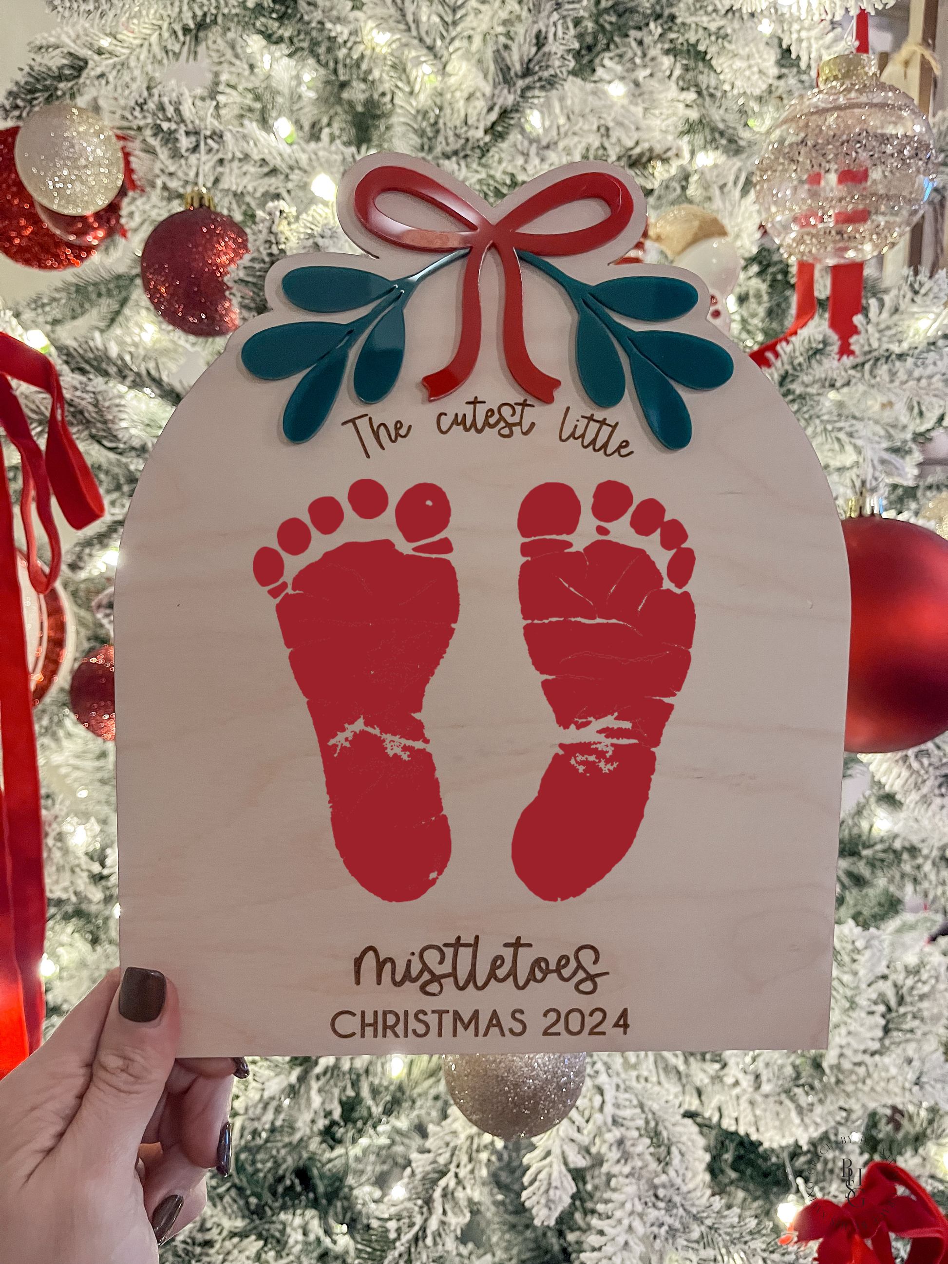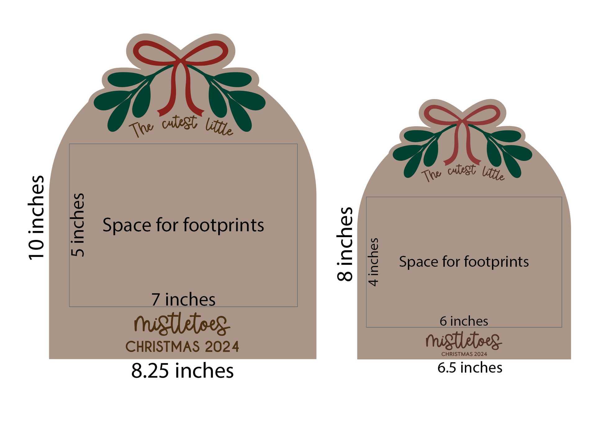 This holiday season, make memories you’ll treasure forever with The Cutest Littles Mistletoes Footprint Sign. We offer this sign in two sizes that let you capture your baby’s or toddler’s footprint using paint, creating a keepsake that will make your heart smile for years.