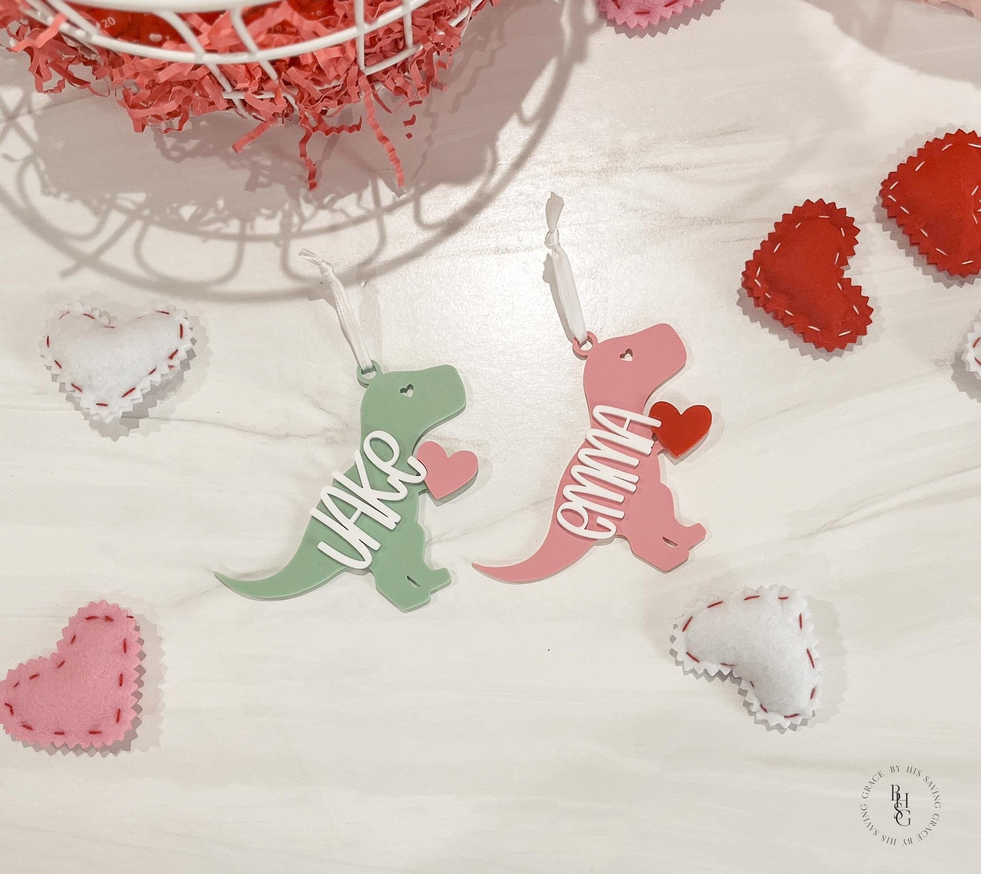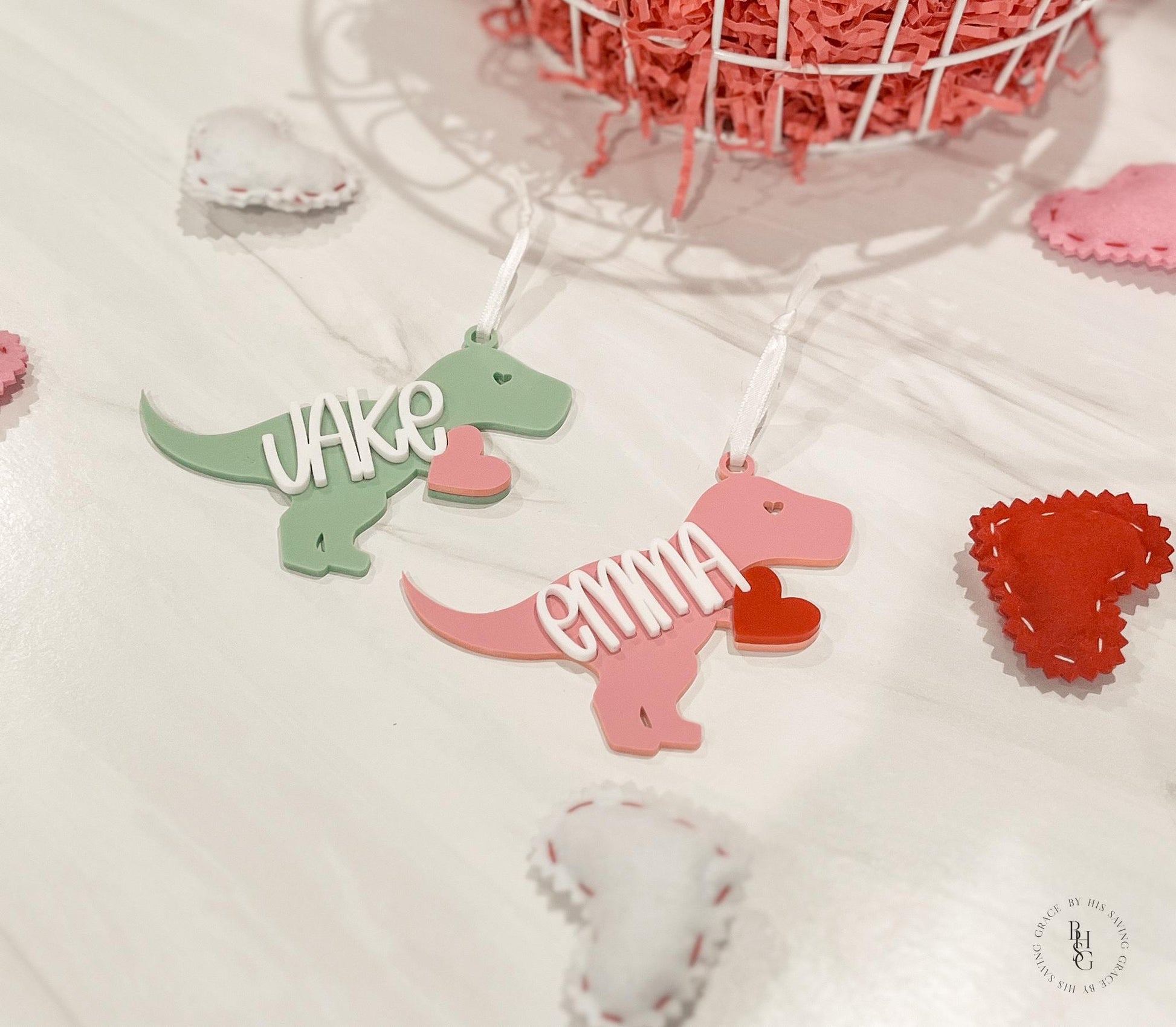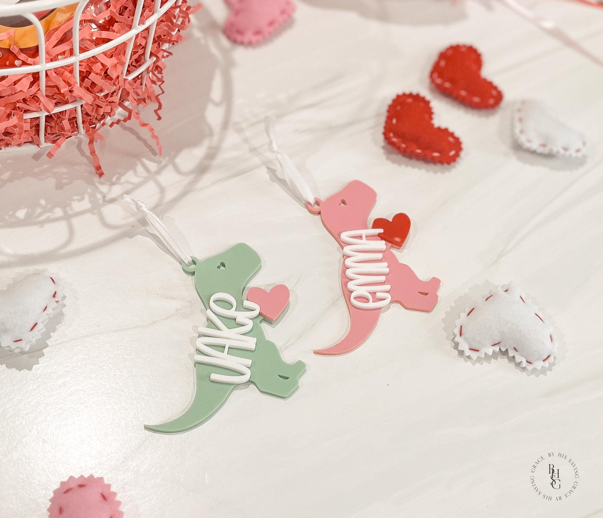 Personalize your kiddos' Valentine's Day gift with this adorable, lightweight dinosaur featuring your name of choice in 3D acrylic.