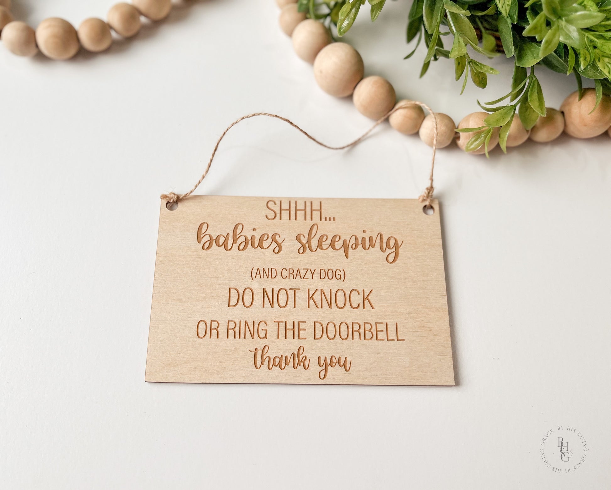 Our laser-cut and engraved doorbell signs are an easy and polite way to let others know you do not want to be disturbed.