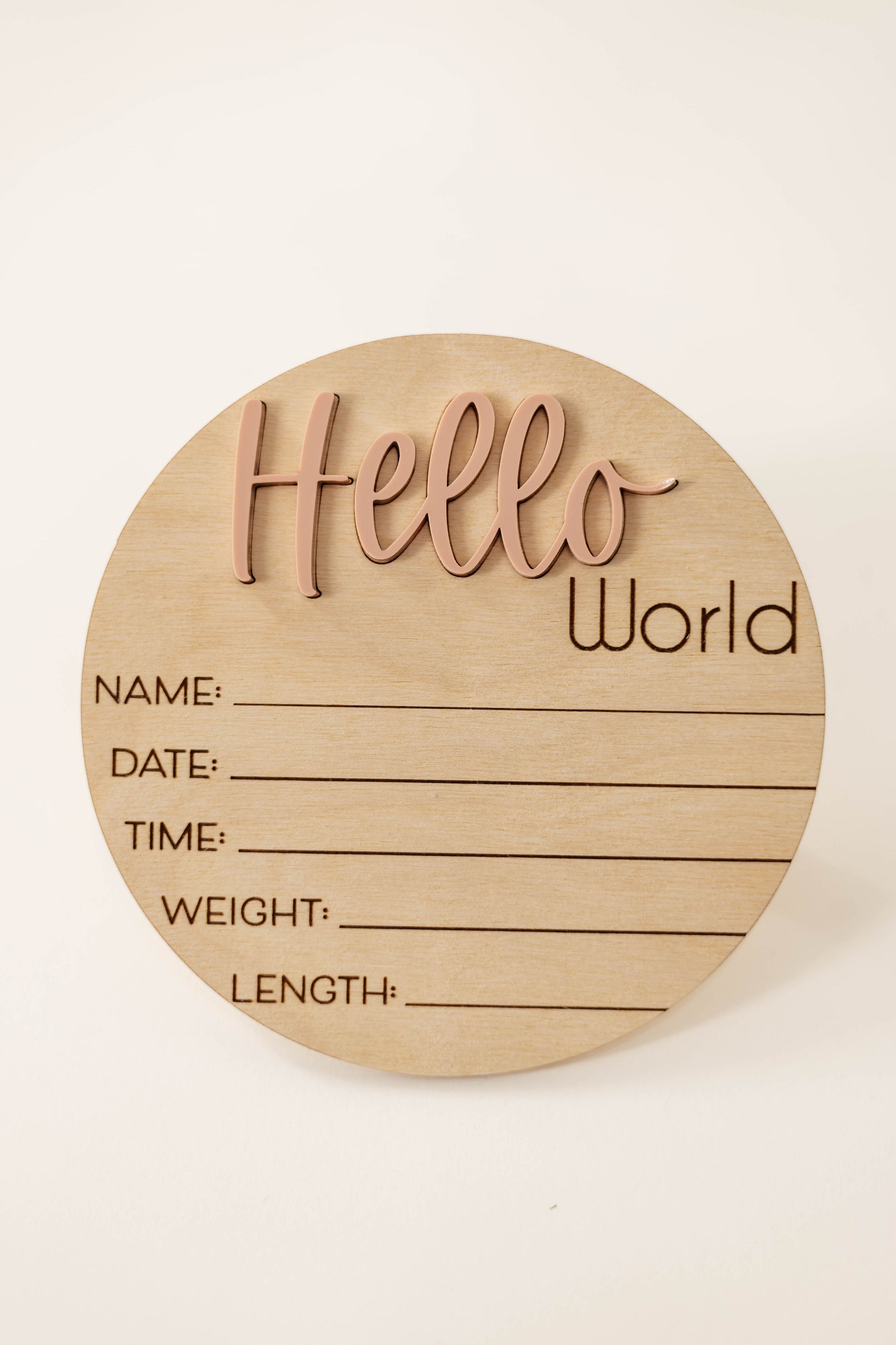 Wooden Hello World Baby Announcement Sign With Birth Stats and Acrylic Hello