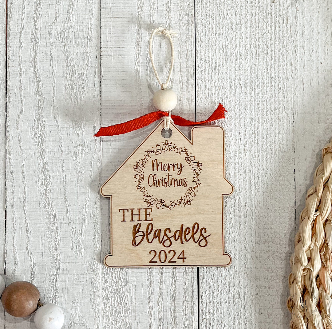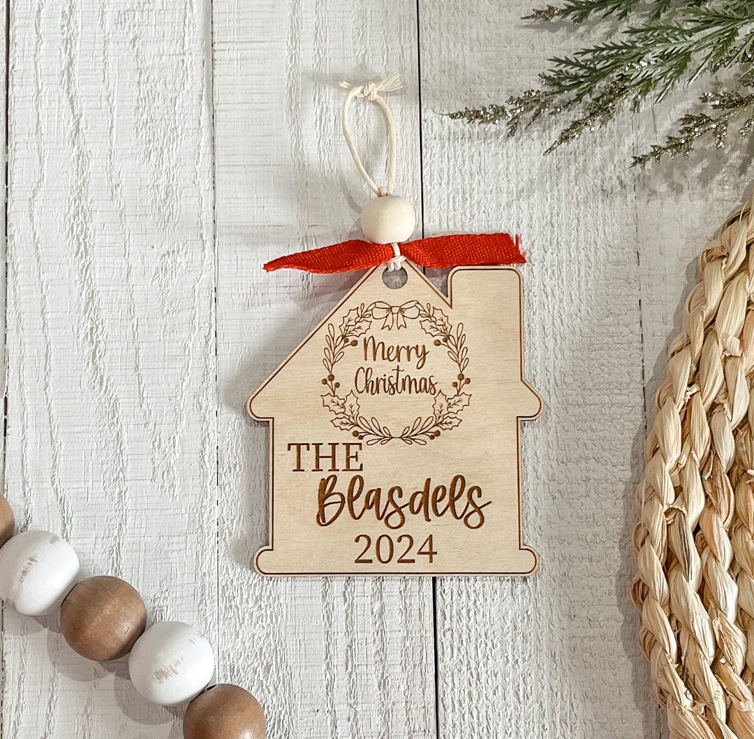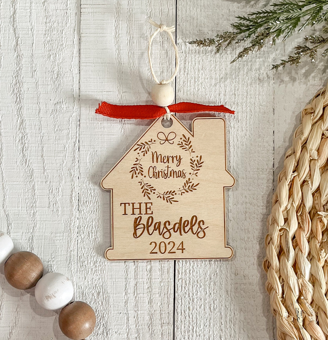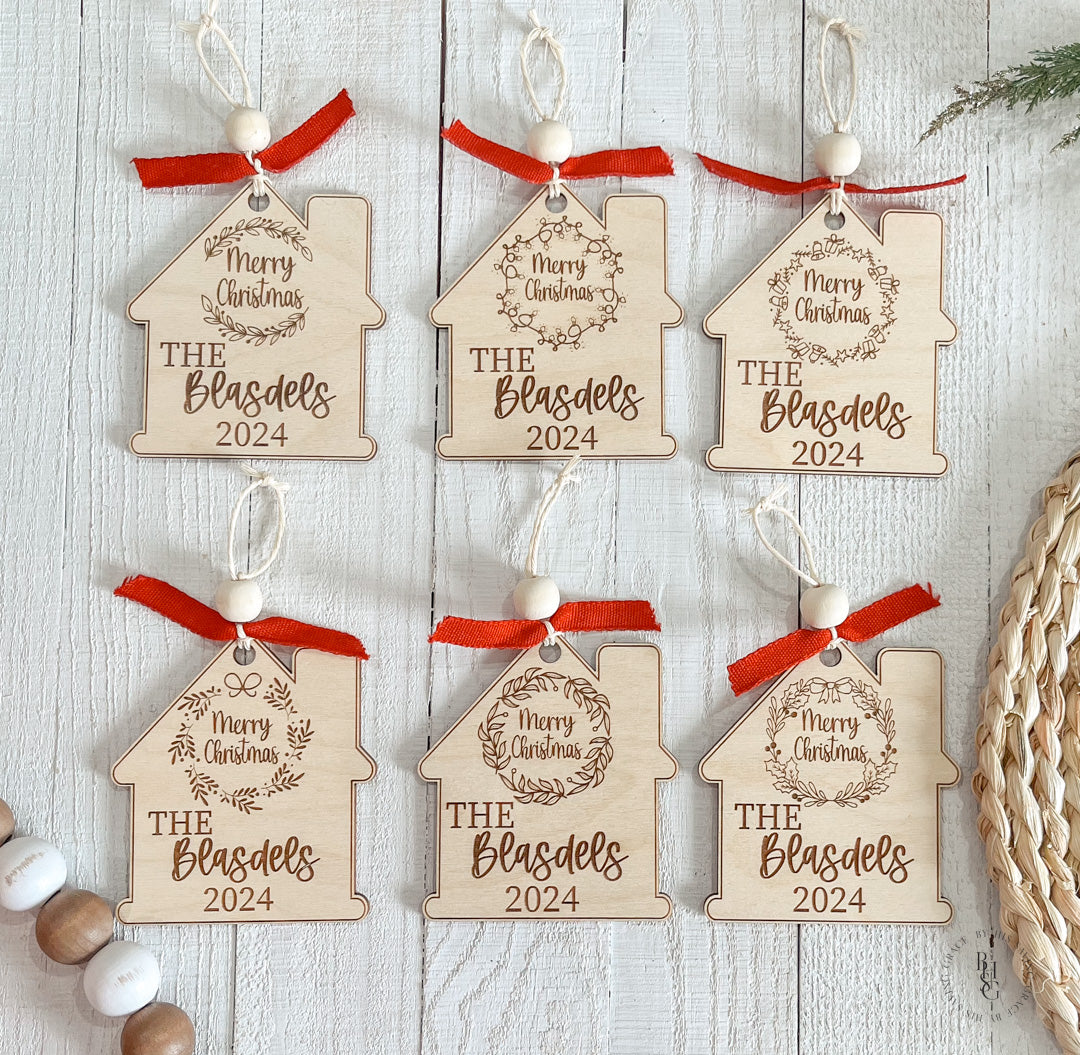 Our laser-cut and engraved home ornaments make an excellent gift for anyone, especially for a new homeowner. Personalize with your name of choice.