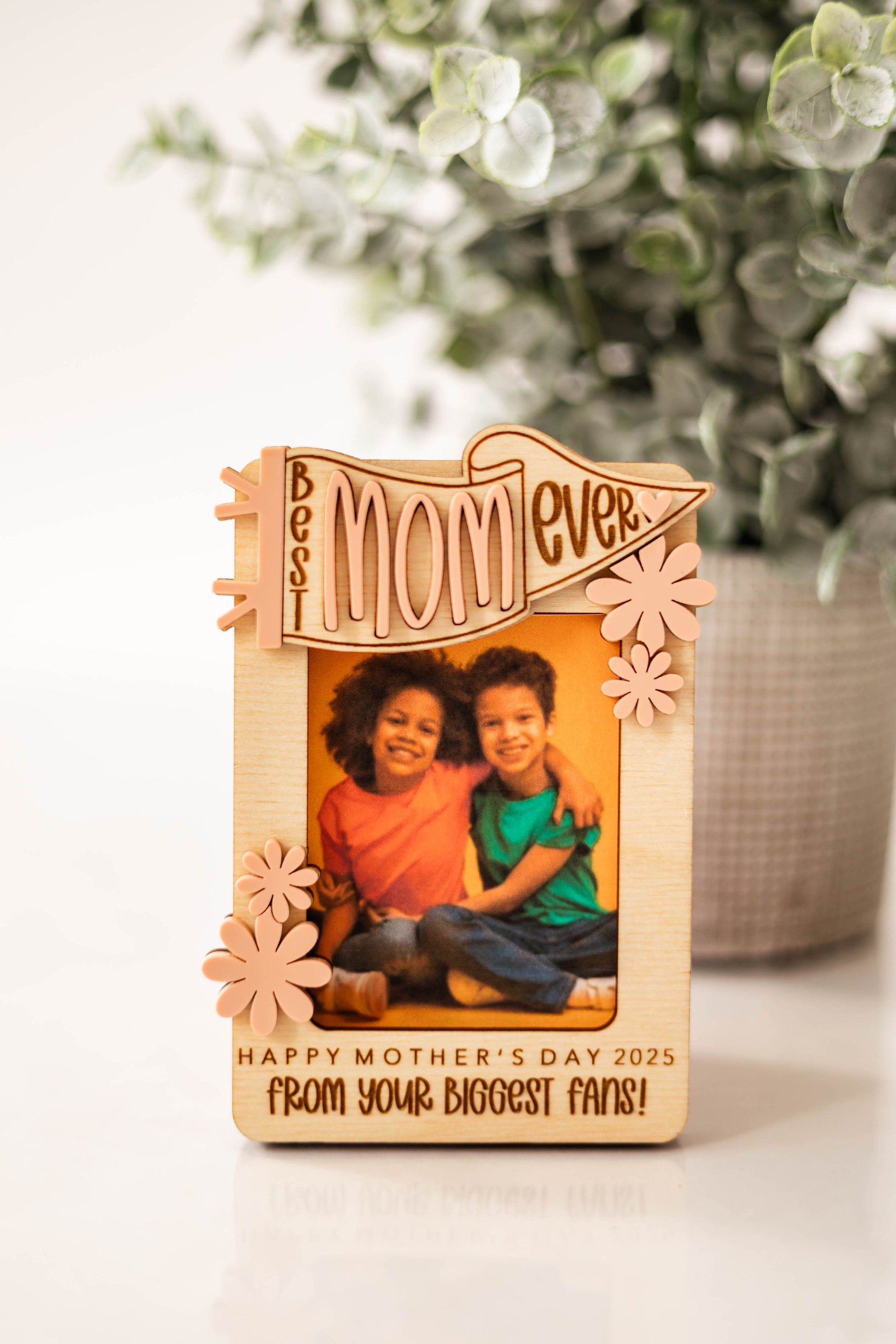 Our "Your Biggest Fan(s)" magnet picture frame features acrylic accents and your name of choice! These adorable frames are an excellent gift for any mom in your life and would be so cute on a fridge or file cabinet!